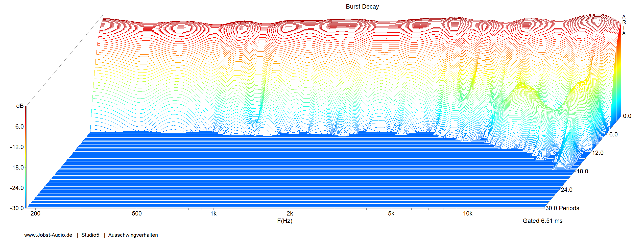 Im Ausschwingverhalten (Burst Decay) sehen wir ein sehr sauberes Verhalten, ohne Resonanzen oder andere Probleme.