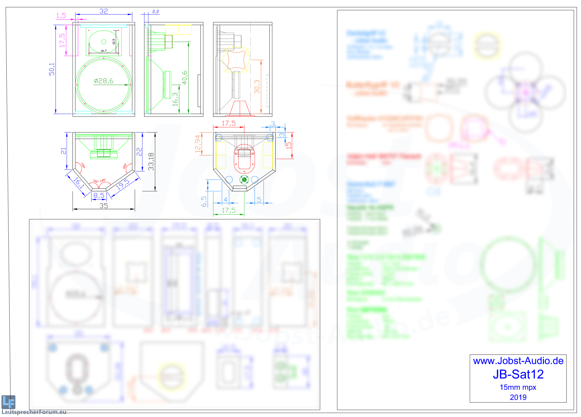 Zu Bauplänen und Weichen bei JB und LF bist Du ja fündig geworden; das Gehäuse wird ventiliert ausgeführt. Bei der LF ist noch je ein Portbrettwinkel drin; die JB hat nur die Schallwanddicke als Portlänge.