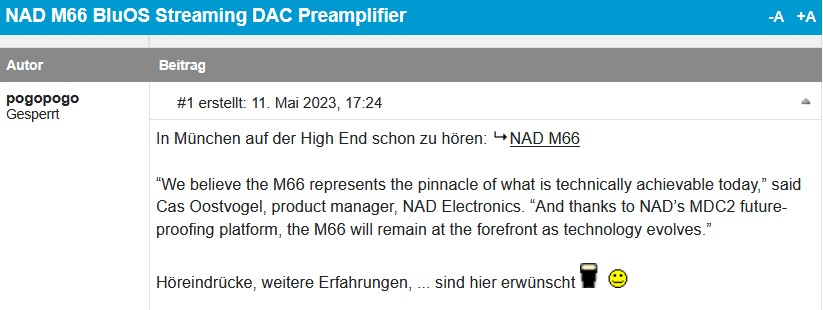 nicht nur ich sehe das so, ein ebenso genervter user in AudioScienceReview schrieb: "I don't know why I'm responding you will continue to promote bluesound on every thread you can. It's as if you are employed by them. It's odd."