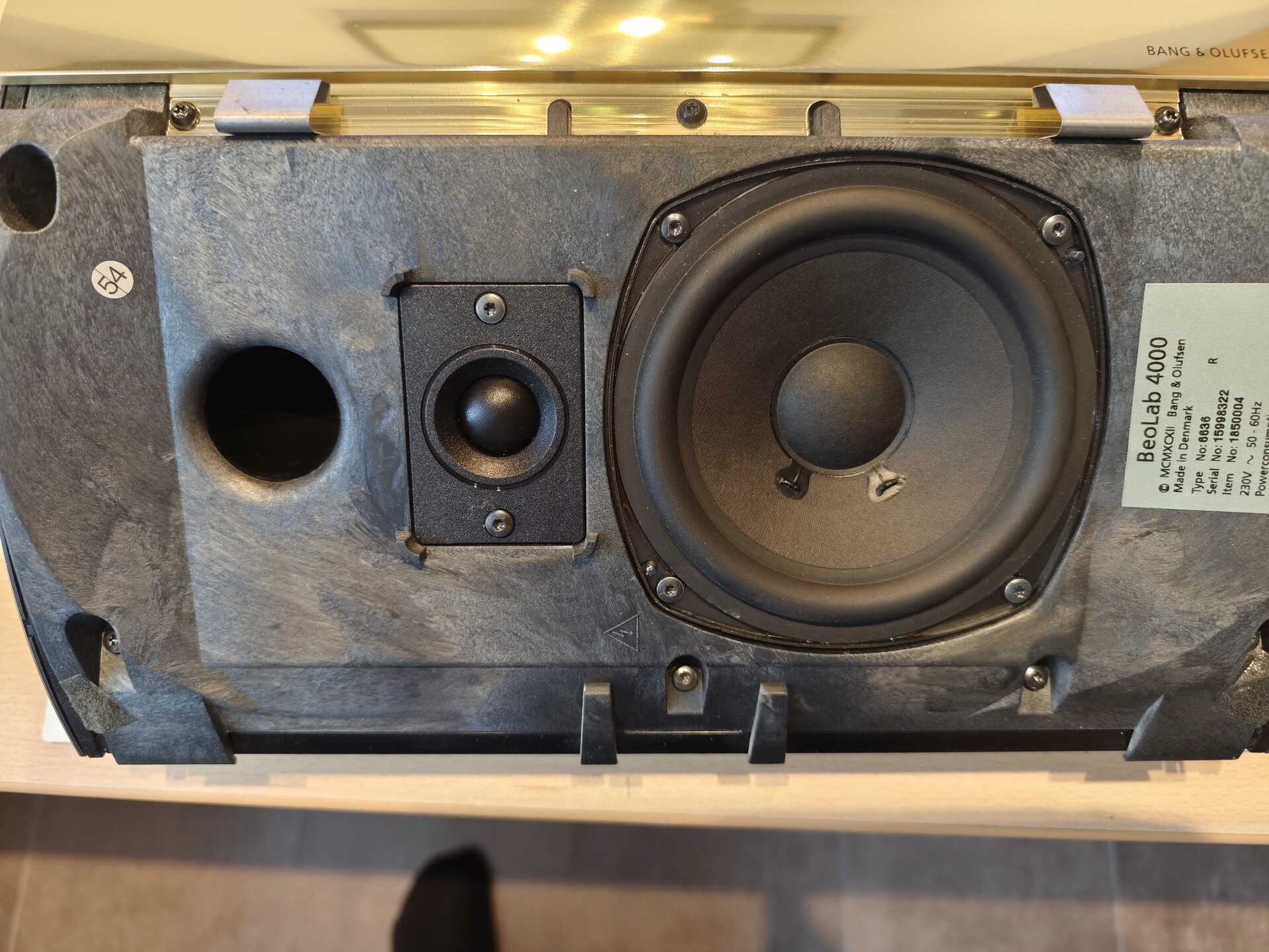 Wer B&O kennt, weiß, das die Reparatur wahrscheinlich den Zeitwert übersteigt. So kam mir folgende Lösung in den Sinn. Gestern ein Paar Beolab 4000 in schwarz per sofort Kauf bei Ebay von Privat bestellt. Sind aus 2010, top i.O. und auch optisch nahezu mängelfrei. Jetzt bieten sich 2 Möglichkeiten an, die Fronatabdeckung Messing und Stoff abnehmen und auf die Schwarzen schrauben. Dann wäre nur noch die Ober,- und Unterseite schwarz. Bicolor, sieht evtl. ganz gut aus. Oder die Technik komplett umbauen, dann hätte ich wieder meine komplett Messingfarbenen wie original.