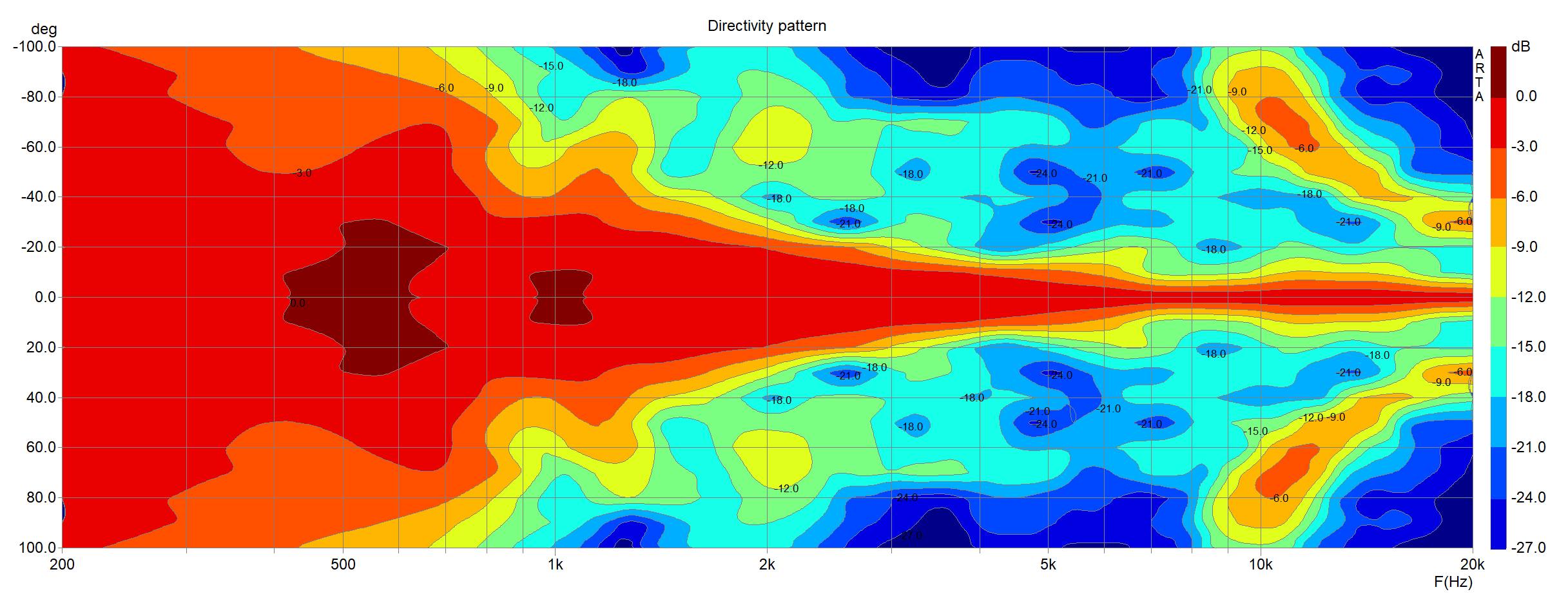 Hier mal ein Cliaclon, also hinten 5"er und davor 8Stück Mini Kalotten: Da sieht man, dass es unter vertikalem Winkel sofort massive Einbrüche gibt,