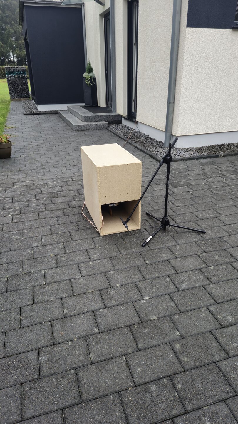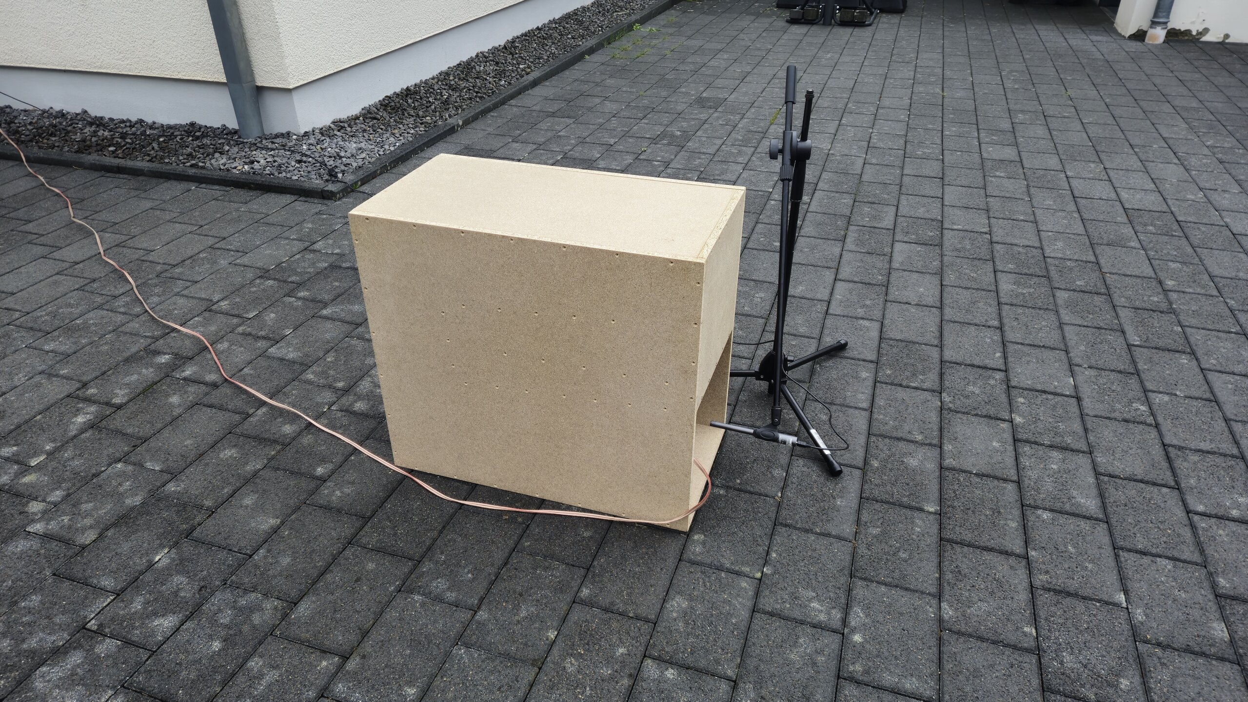 Gemessen habe ich mein Lonely.TH12_mkII, wie immer, draußen in meinem Innenhof auf dem Boden stehend, Messmikro mitte Hornmund.