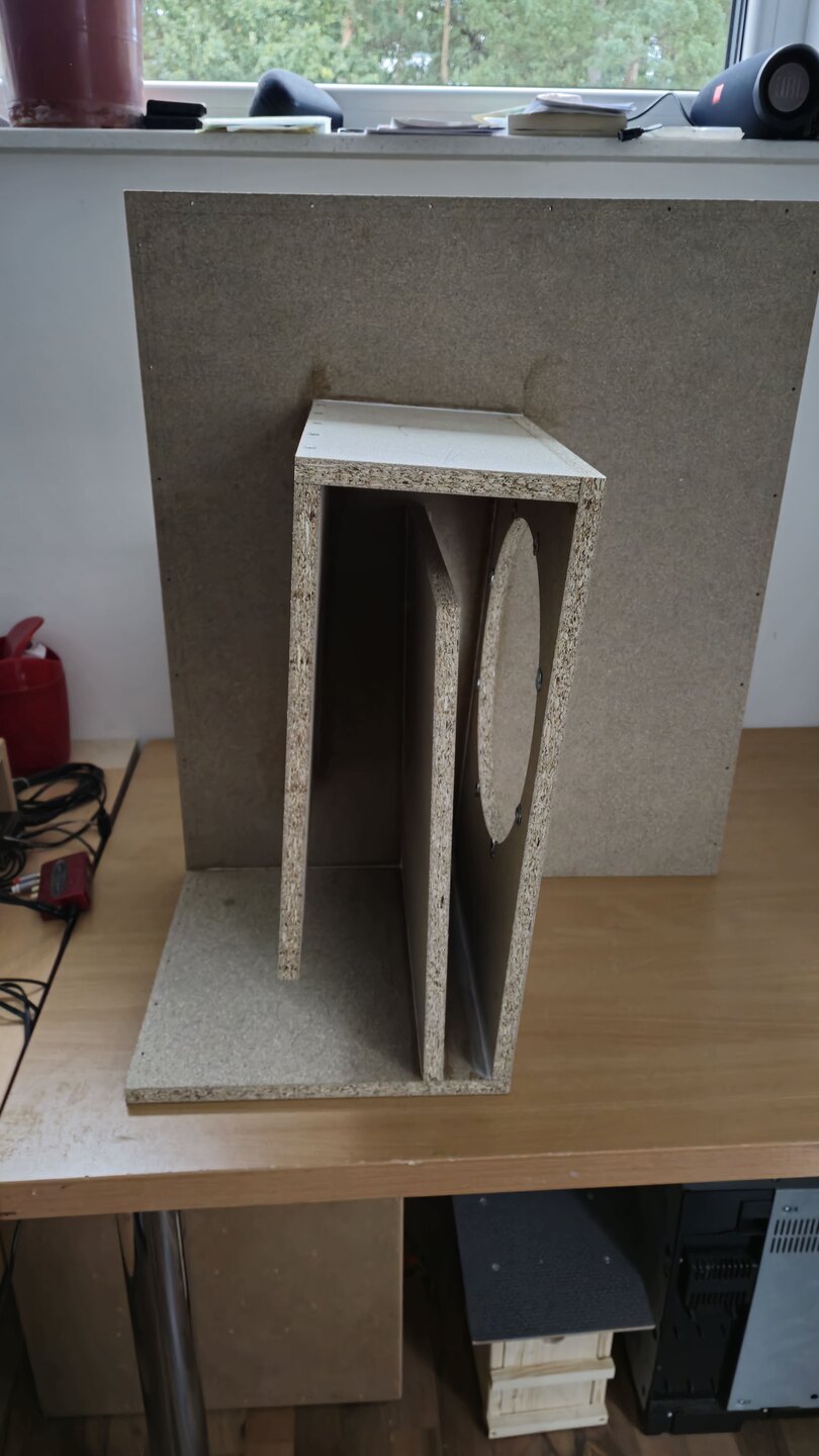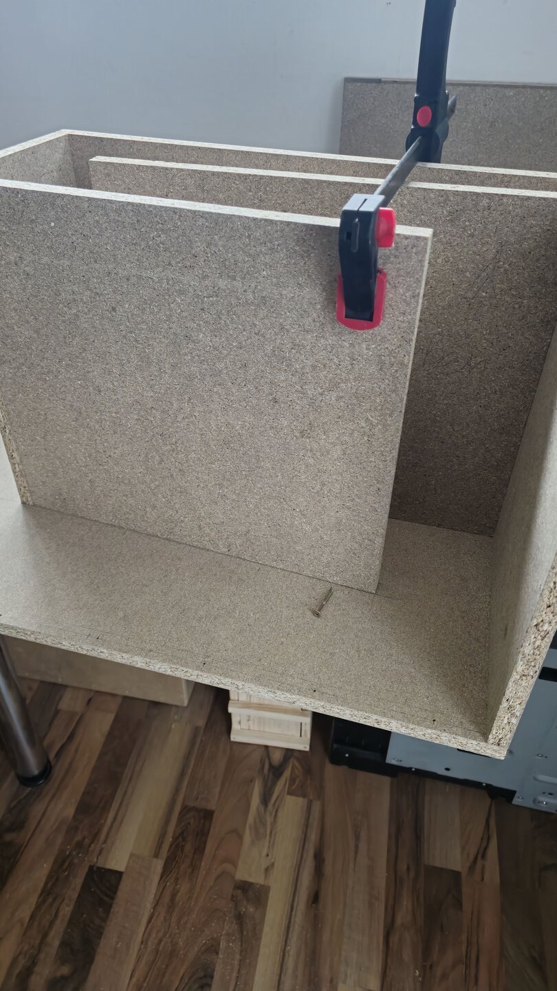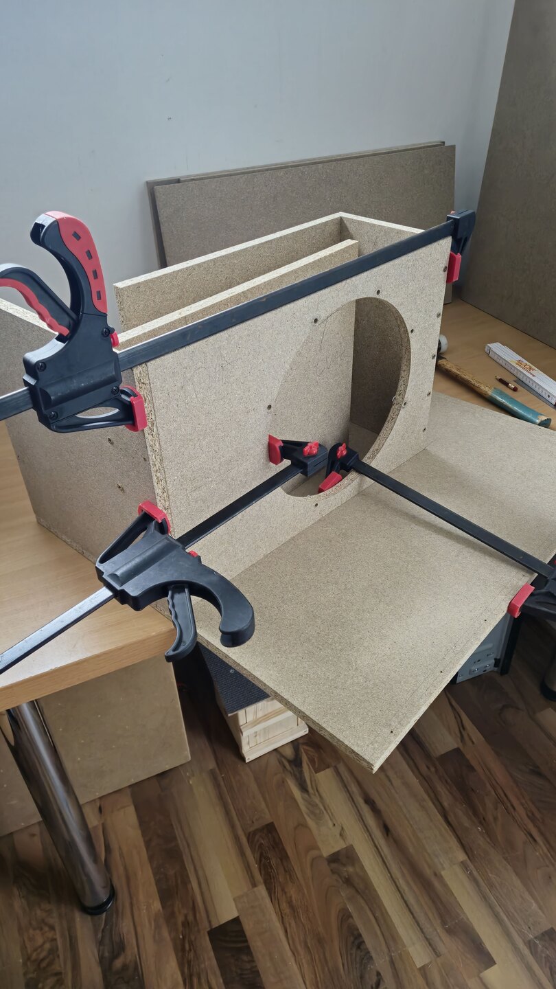 Um die Entwicklungskosten möglichst niedrig zu halten, habe ich den Bauplan wieder in 16mm Spanplatte umgestrickt und auch aufgebaut.