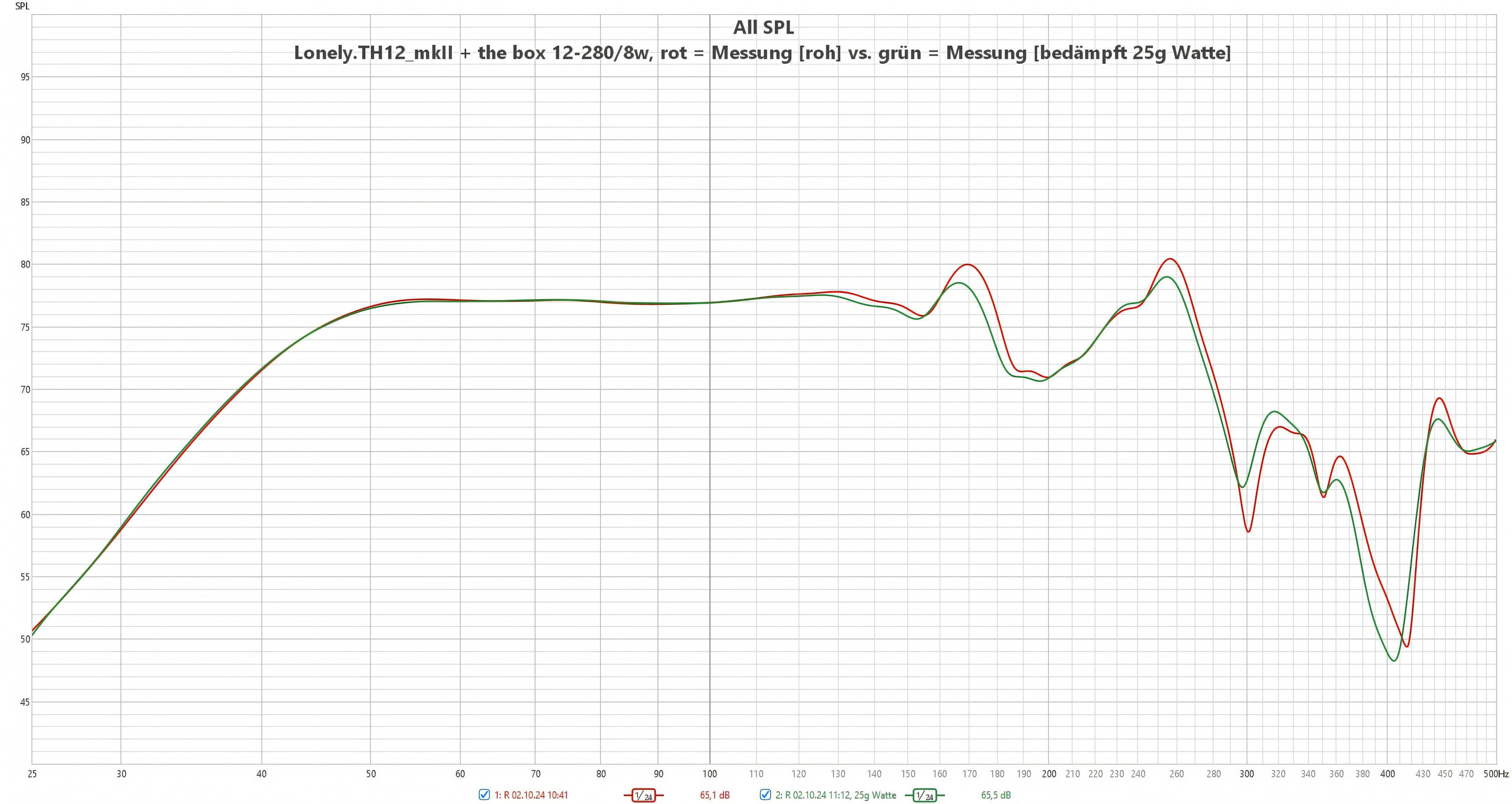 Die gut +1dB erhöhte Resonanz bei ca. 165Hz wollte ich mit paar Gramm mehr an Bedämpfung "erniedrigen". :D