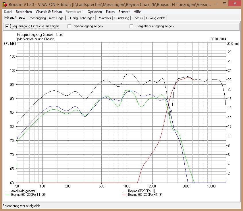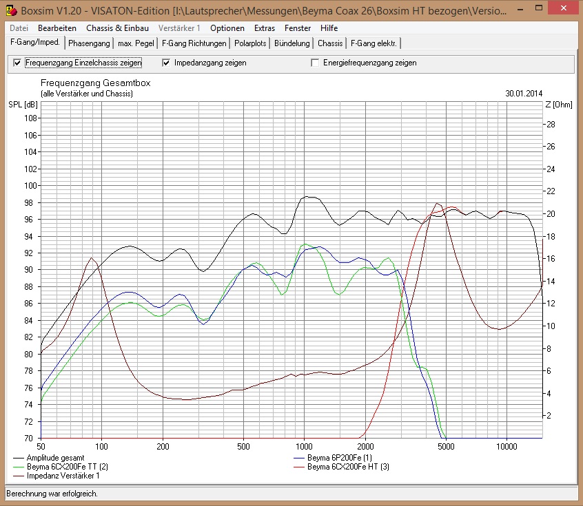 Allen LS gemeinsam ist der satte Xmax von +-5mm - was ich aber bei Koaxen wegen der Schallführung etwas kritisch beäuge. Ein klarer Punkt für den B&C. Alle Chassis wollen irgendwas um die 6-8L im Bassreflex mit Tuning um die 75Hz, der BMS geht dabei glatt bis 100Hz runter, B&C und Faital fallen ab 200Hz sanft ab bis 100Hz -3db, danach gehts steiler runter. Ist alles i.O.