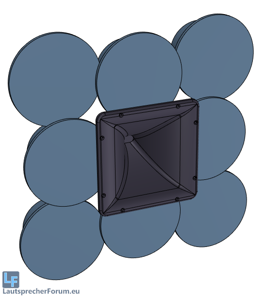 Um die akustischen Zentrn näher zusammen zu bekommen dachte ich an diese Anordnung: