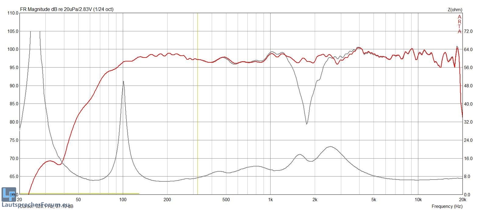 Rmin liegt bei 5,77 Ohm @200Hz, damit liegen wir nominell genau bei 7 Ohm.