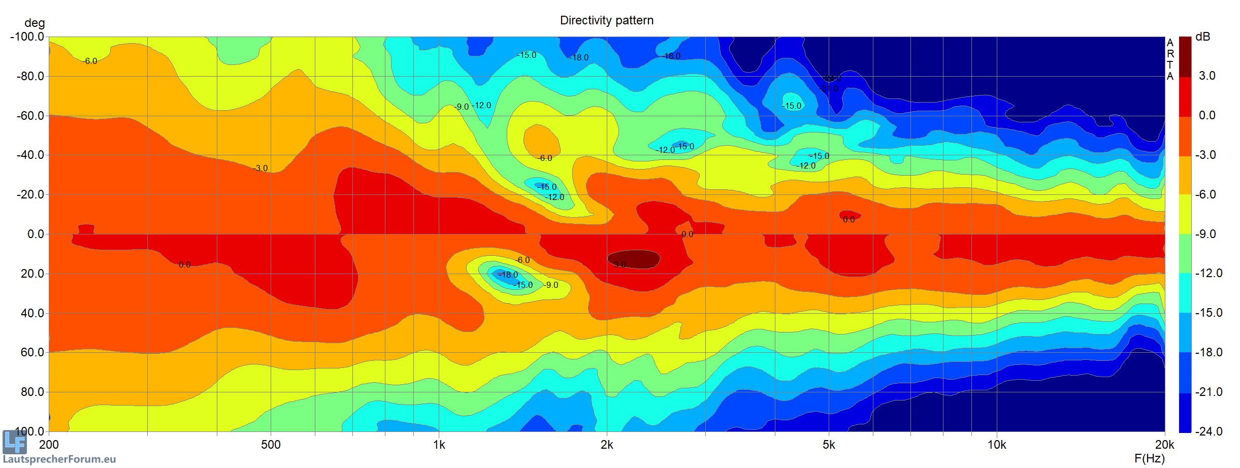 Bei der Vertikalen (60°) sehen wir prinzipbedingt den Sweetspot, welcher aber ziemlich "human" ausfällt
