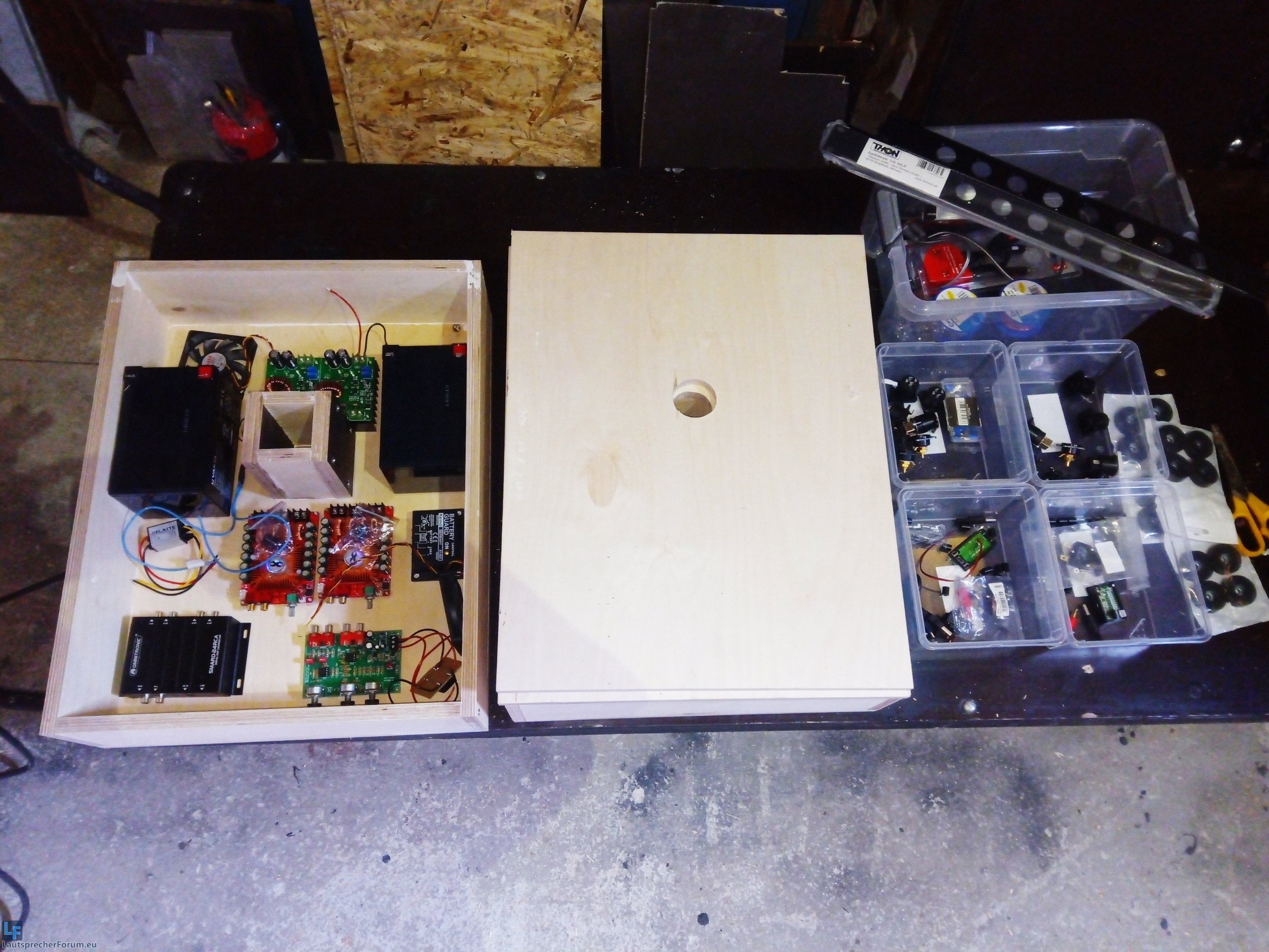 So habe ich mir überlegt mich mal an einem 4-Kanal Verstärker zu versuchen, an dem auch gleich ein DSP und Vorverstärker integriert sind.