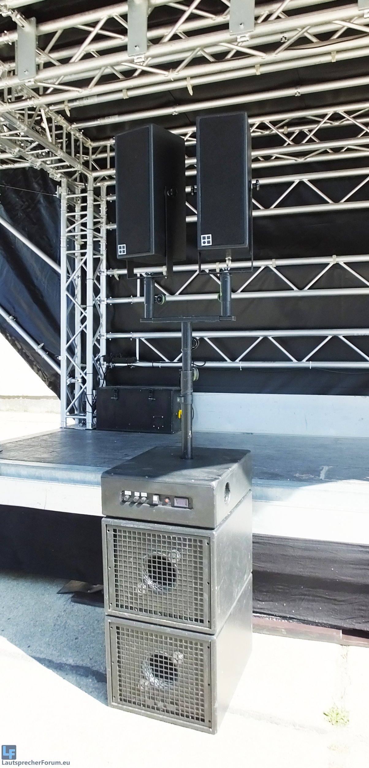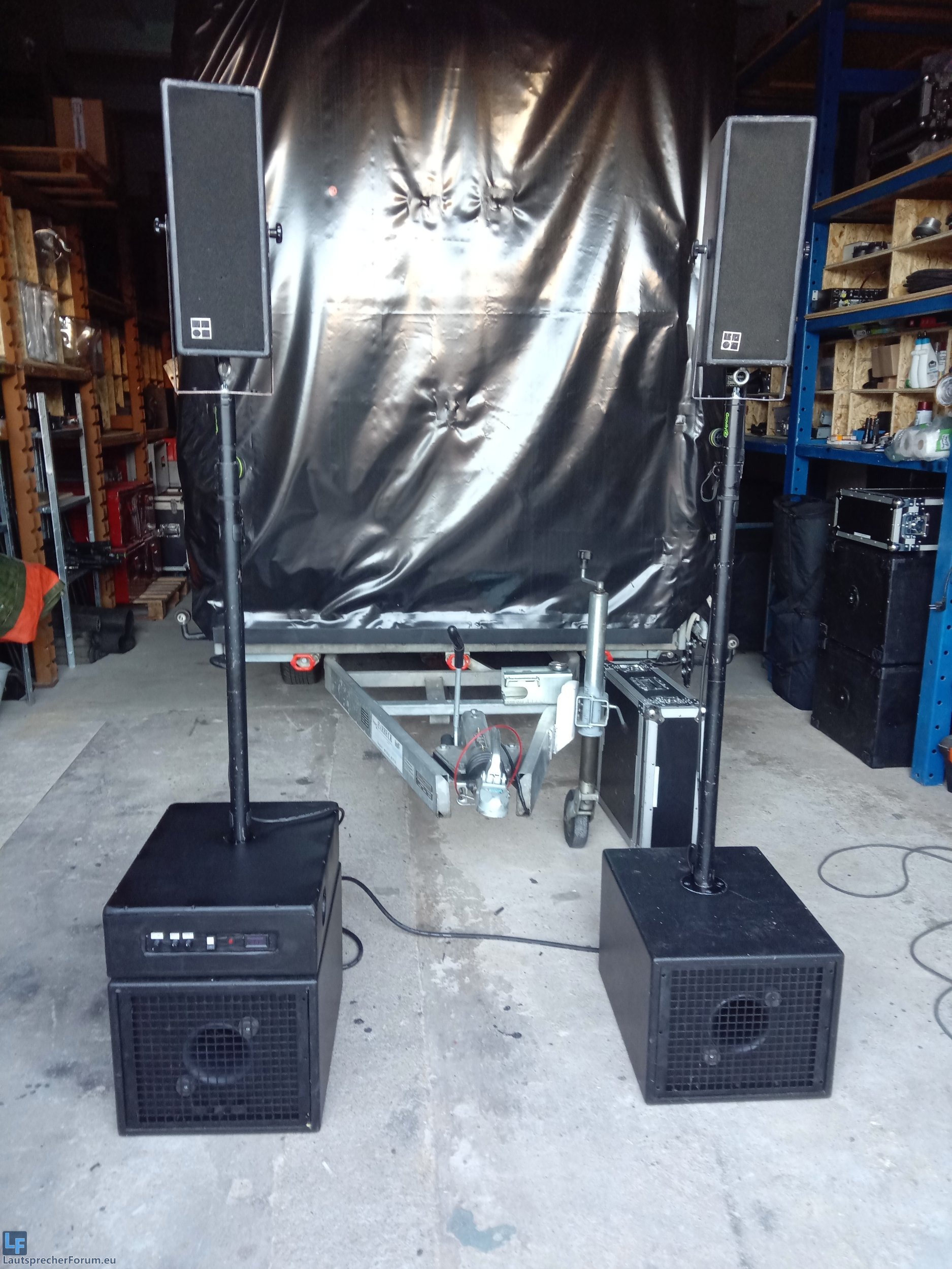 Ich habe erstmal zwei OHM HGW 12 und 2 d&b E1 Topteile dafür genommen. Das ist klanglich und auf die Größe bezogen vollkommen in Ordnung!