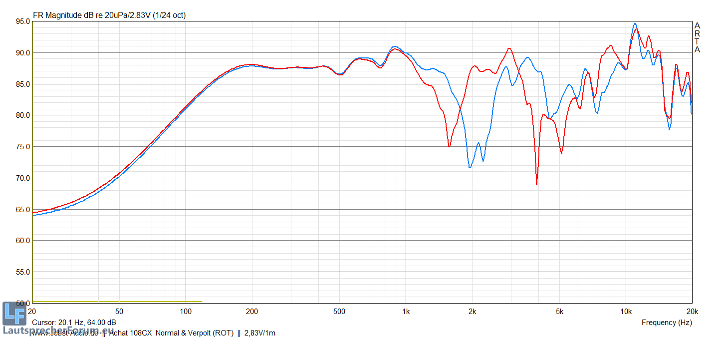 Sicherheitshalber habe ich sogar 2 Kisten vermessen, mit und ohne Gitter, als auch verpoltem Hochtöner.