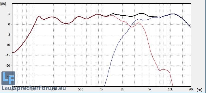 Bei der Messung sieht man, dass es im Bereich der Xover bei ca. 3,8KHz ein Buckel von knapp 3-4dB gibt. Die Kerbe bei über 1kHz muss ich nochmal genauer untersuchen.