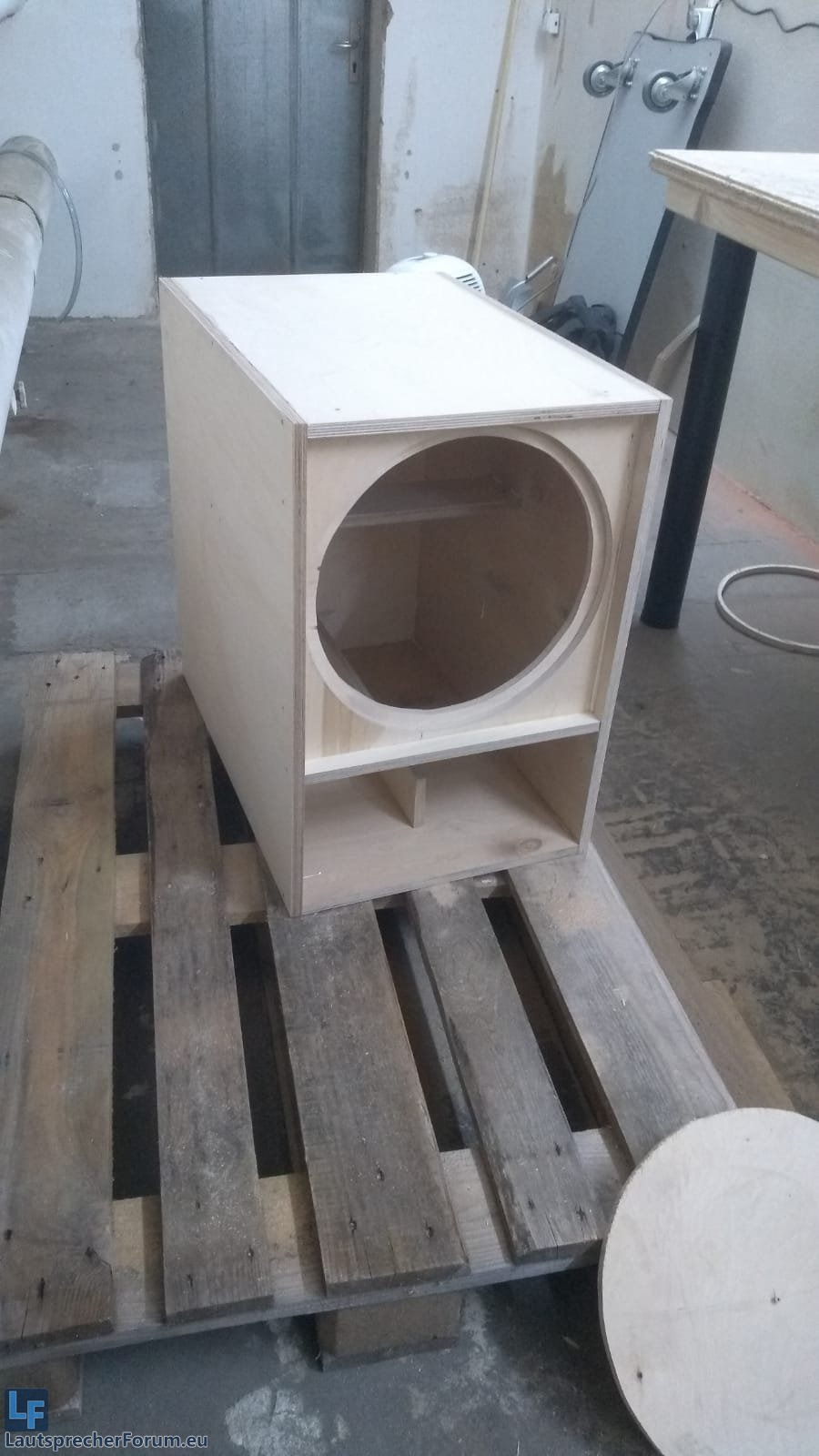 Nach langem Stillstand musste ich auch mal wieder etwas für meinen Mietfuhrpark basteln. Ziel war es, zwei leichte gut klingende Subwoofer für mittlere Veranstaltungen zu bauen. Außerdem müssen sie nicht viel Leistung abkönnen, da sie mit dem Aktivmodul des Thomann the box CL 118 Sub MK II betrieben werden (175 Watt pro Sub).