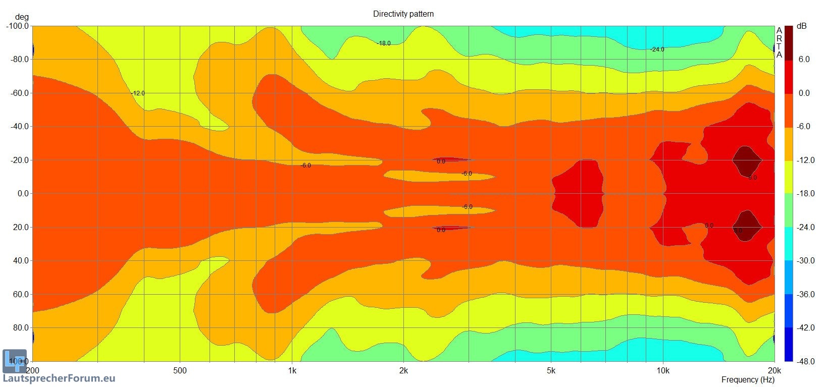 Gehen wir mal davon aus, dass im Normalfall die 40° vertikal des Hochtonhorns am Übergangspunkt zu der vertikalen Abstrahlung der zwei 12er passen, also eben 40°. Wenn man nun ein zweites Top daneben stellt, hat man horizontal quasi das, was man vertikal hat, plus etwas mehr durch die Gehäusewinkel. Ich würde som besten Fall auf 60° tippen. Ein ziemlicher Sprung zu den 120° im Hochton...