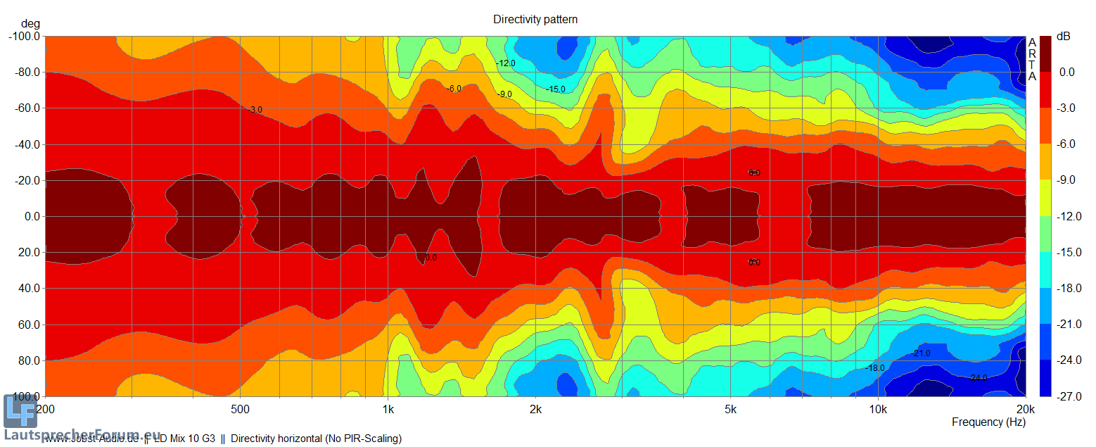 Die Directivity laut Datenblatt passt ziemlich, dieses sagt 80*70°, wobei ich in der Vertikalen eher 50° sagen würde.