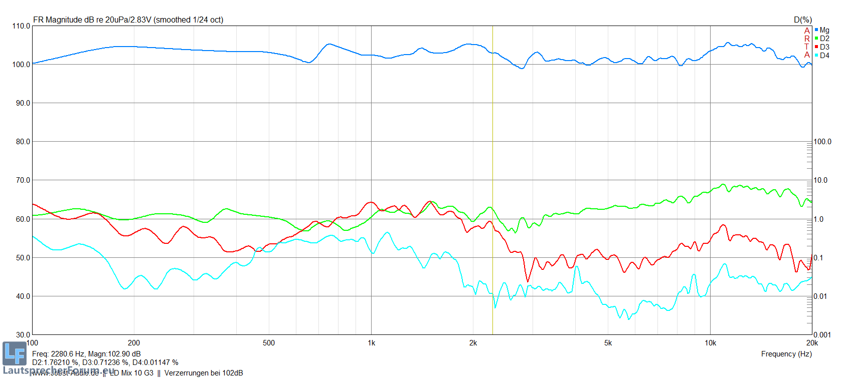 Allgemein klingt die Box weniger Direkt und Harsch (in den Mitten) als man anhand der Klirrmessungen vermuten könnte,