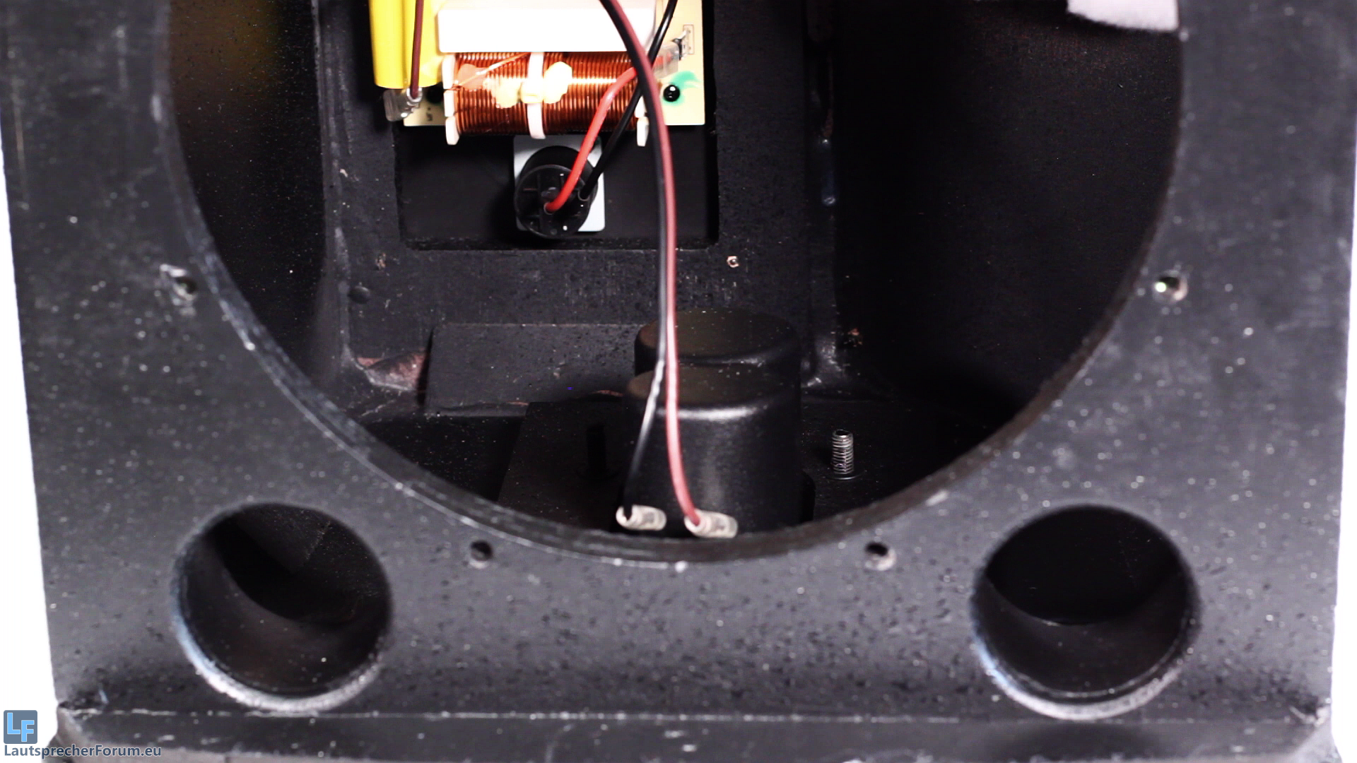 Wie leider so oft in dieser Preisklasse, wurde massiv am Bedämpfungsmaterial gespart, wir finden lediglich einen lieblos reingeklatschten Fetzen Polyesterflies.
