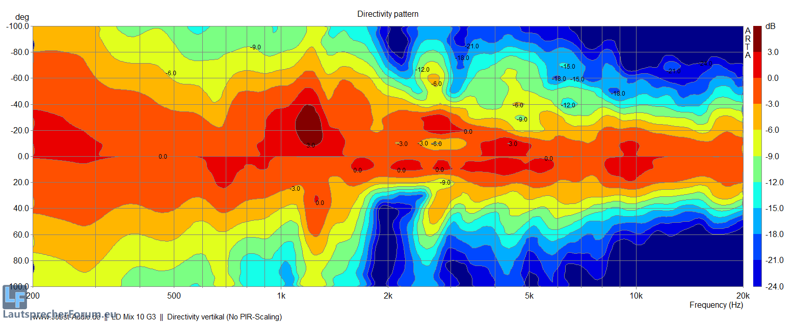 Die Directivity laut Datenblatt passt ziemlich, dieses sagt 80*70°, wobei ich in der Vertikalen eher 50° sagen würde.