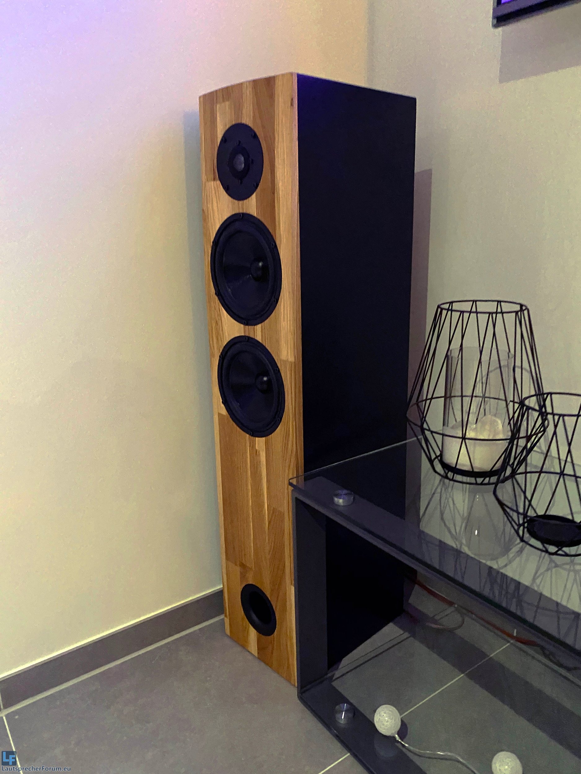 Zwei Tieftöner bringen zwar die Impedanz auf 4 Ohm, jedoch kann trotzdem mit einem Handelsüblichen HiFi Verstärker so auch der nötige Tiefton Pegel erreicht werden. Der Bass ist spürbar, aber trotzdem nicht überbetont. Und das ohne Subwoofer.