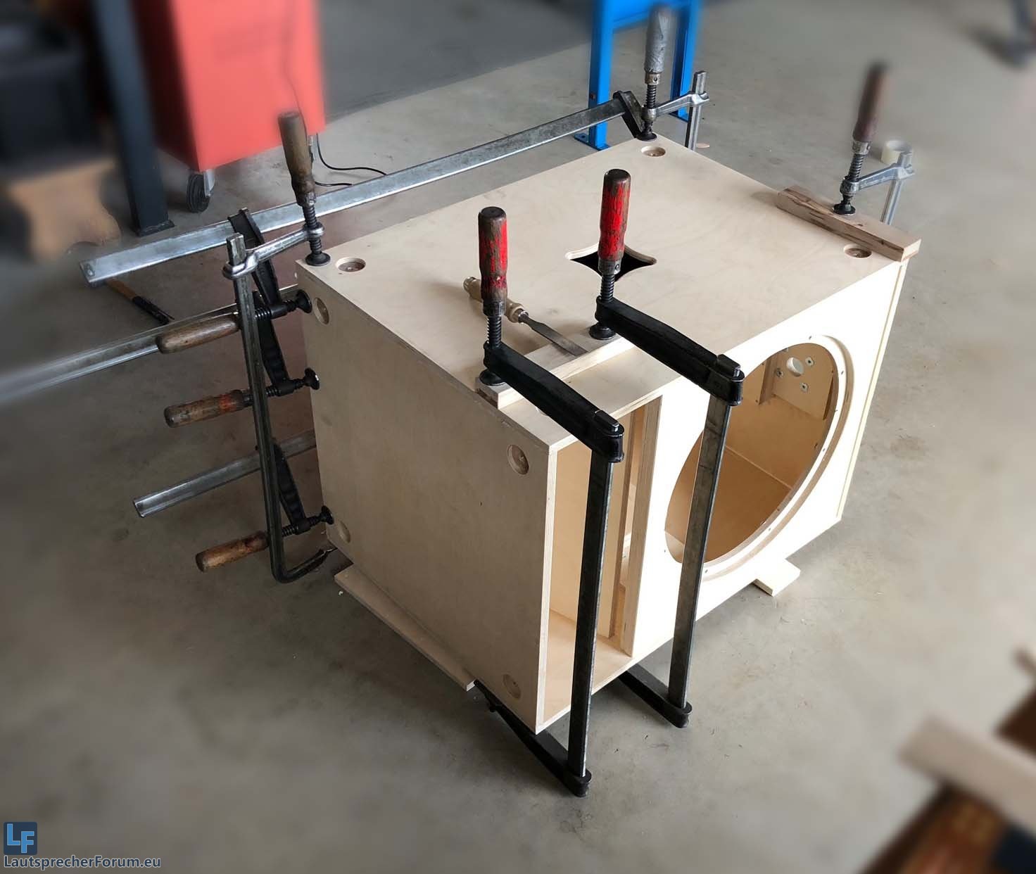 Parallel dazu wurden die Subs verleimt. Wichtig waren dabei Schraubzwingen, so viele wie die Werkstatt hergibt!