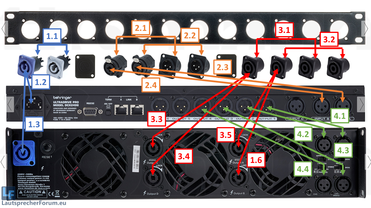 Die Verkabelung der Rackblende und der Endstufe mit der DCX waren dabei eine besondere Herausforderung, da ich mich nur wenig damit auskannte.