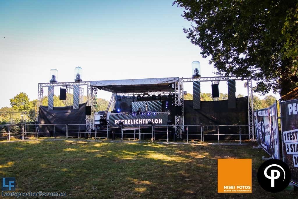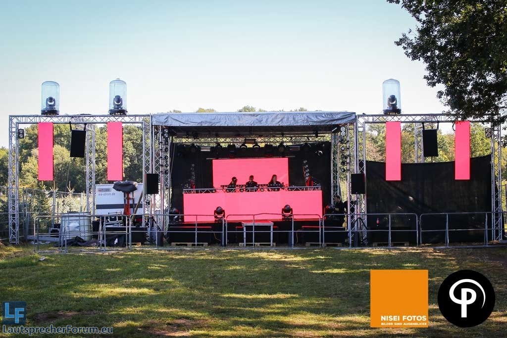 Kurze und Späte Zusammenfassung vom Festival: Der Veranstalter und das Publikum waren rundum zufrieden. Mir Persönlich fehlten 2 weitere E218 für die Zahnlücke um auf voller Breite gleichmäßig beschallen zu können. Des weiteren war die Zeit aufgrund der Lichttechnischen und Videotechnischen Aufbauarbeiten so knapp, das alles nach Gehör eingestellt wurde und leider die Phasenlage der Lautsprecher nicht gemessen und abgestimmt werden konnte. Für die Augen gibt's auch noch paar Fotos ;-)