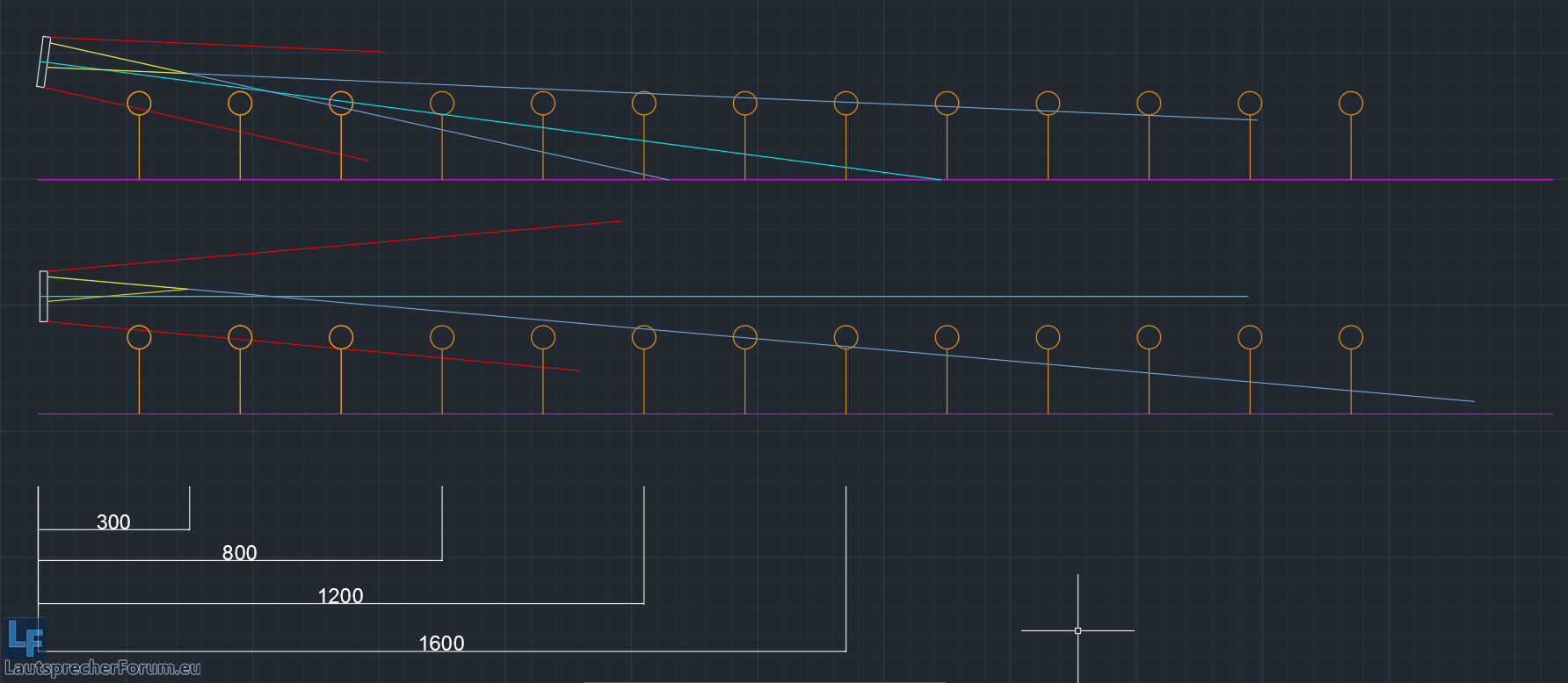 Eine Zeile ist eigentlich an ein LA angelehnt und soll eine kohärente Wellenfront bilden,