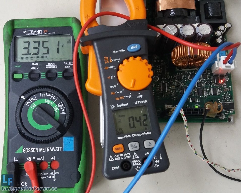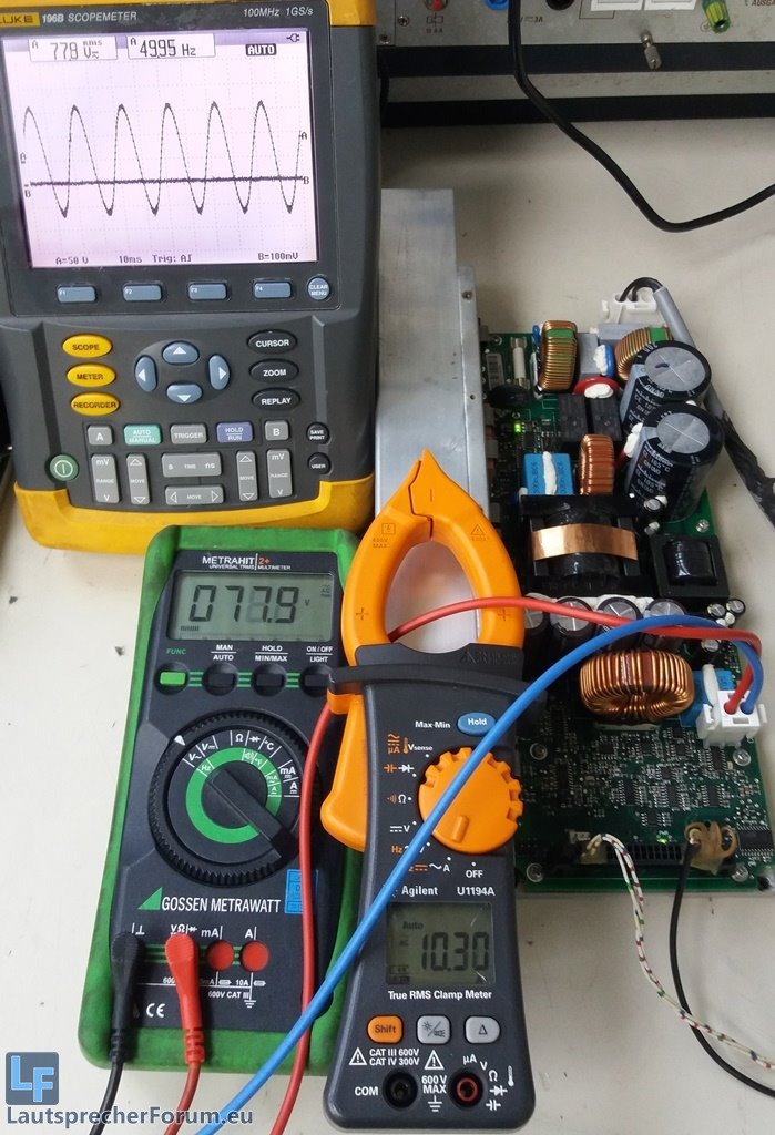 Ich hatte bei den Messungen sowohl Strom als auch Spannung mit Multimetern und die Singnalform mit dem Oszi beobachtet.