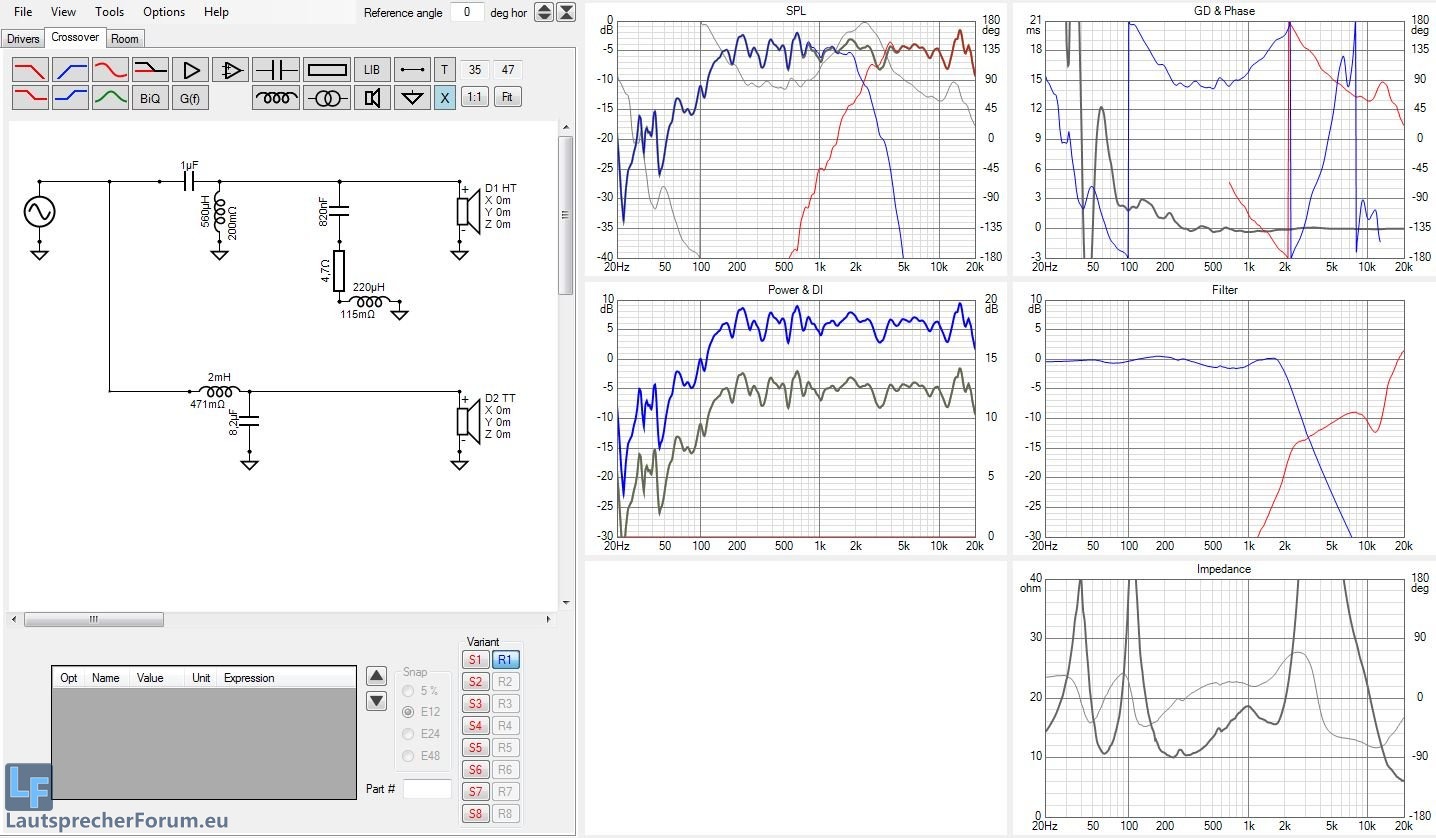 Trennung wollte ich etwas höher als Jobsti ansetzen, da zum einen der HT schnell nervig wird, zum anderen hat er ne Reso bei 1,3kHz, was nicht unbedingt schön ist.