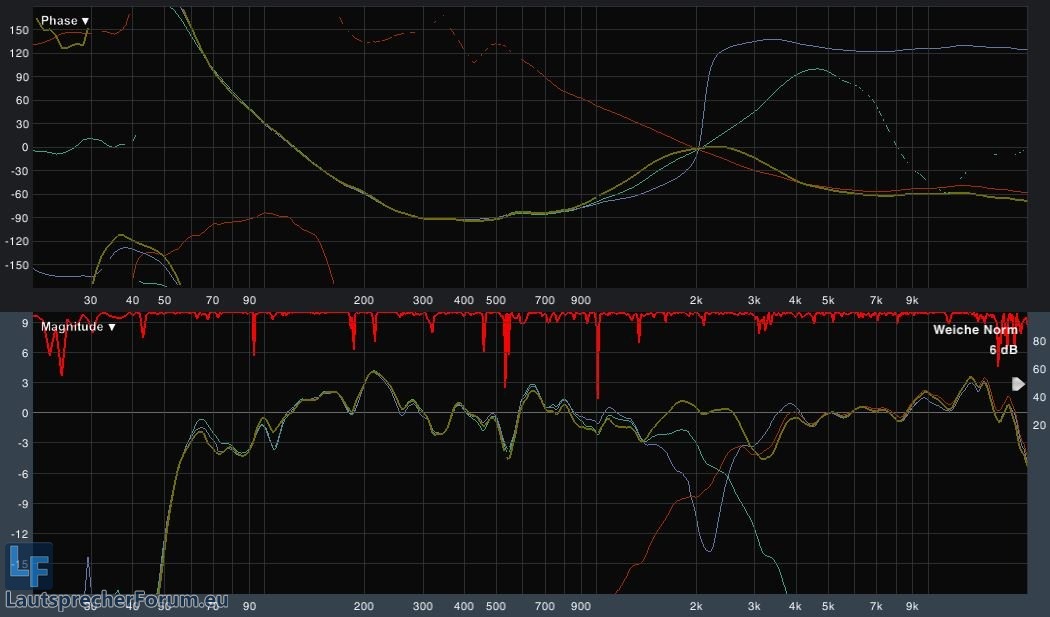 Meine Version der Achat112 Mod ist eher Linear und nicht auf Pegel getrimmt. Für mein Empfinden klingt es so natürlich und bis in höhere Pegel unangestrengt. Die Phase gefällt mir messtechnisch so nicht wirklich, dafür hat die Weiche nur 7 Bauteile und ist klanglich nach meinem Geschmack, Subjektiv das beste, was man aus den verbauten Pappen machen kann.