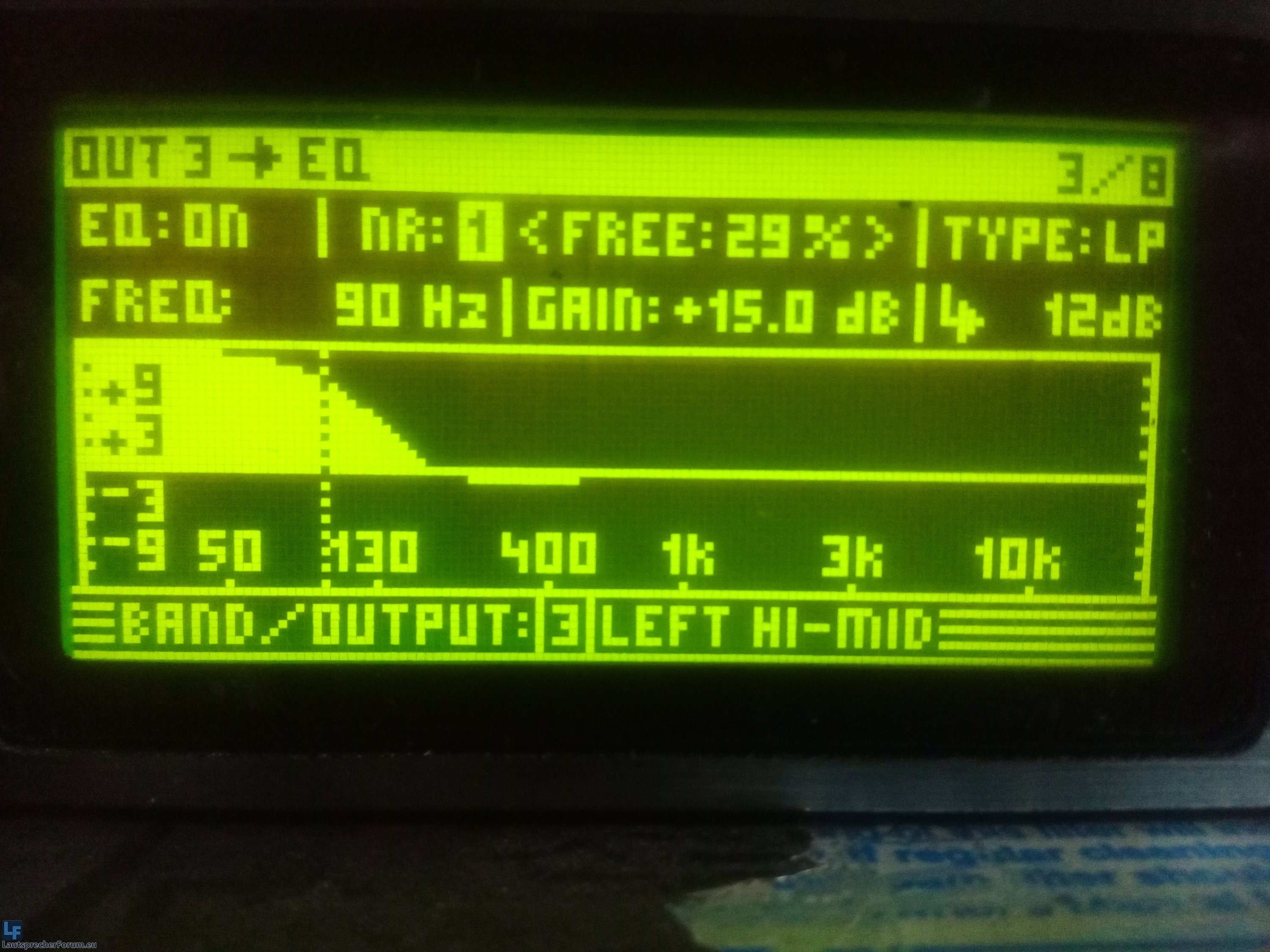 Ich habe die Einstellungen im DCX 2496 eingestellt bin mir jedoch nicht sicher ob ich alles korrekt verstanden habe von den einzustellenden Parametern. Ich habe nochmal Fotos meiner EQ-Einstellungen angehangen.