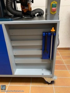 Die Keilleisten für den Unterschrank sind auch montiert und ein erster Halter mit den Tools zum verstellen der Fräse ist angefertigt. Weiter Halter baue ich demnächst.