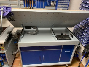 - er muss eine Spahnschublade und mehrere Schubladen zur Werkzeug-/Hilfsmittelaufbewahrung besitzen