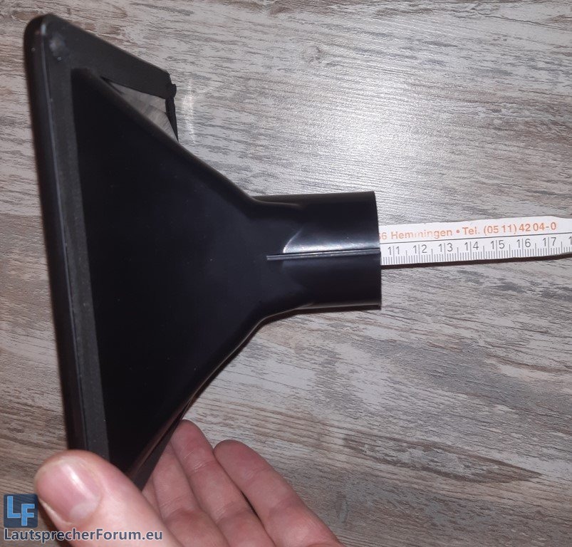Adapter ist da, passt auch relativ gut. Eine kleine Kante (0,5mm) am Übergang Horn - Adapter muss ich abfeilen, der Rest sitzt gut.