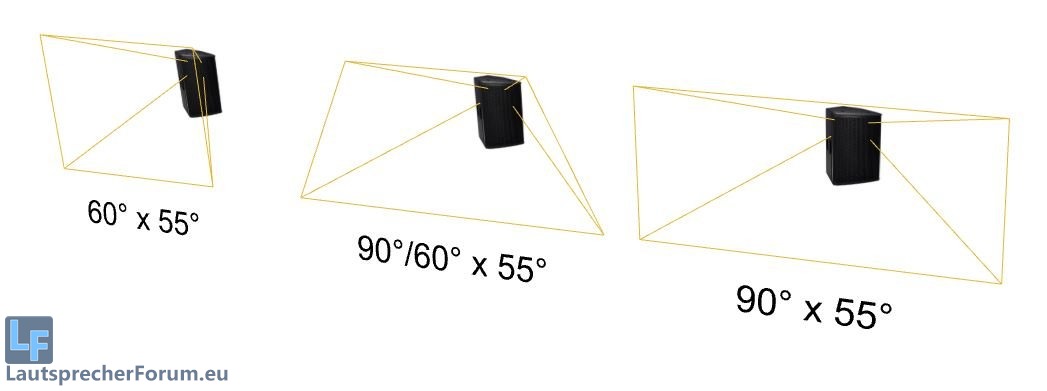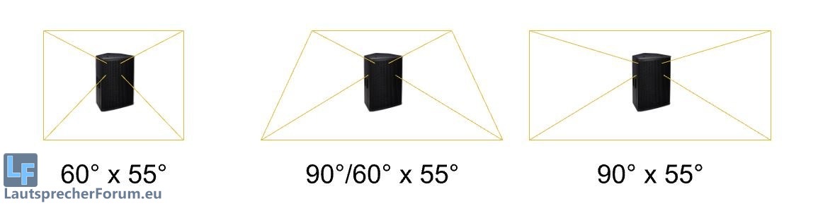Es bewirkt eine bessere Schallverteilung im raum. Mit den 90° fürs Nahfeld erwischt man die ersten Reihen sehr gut und die 60° für die Ferne bewirken, das nicht so viel Energie sinnlos an die Wände ballert oder einfach nur verschwendet ist. Durch den engeren Winkel bzw. die einger Bündelung kommt man etwas weiter damit.