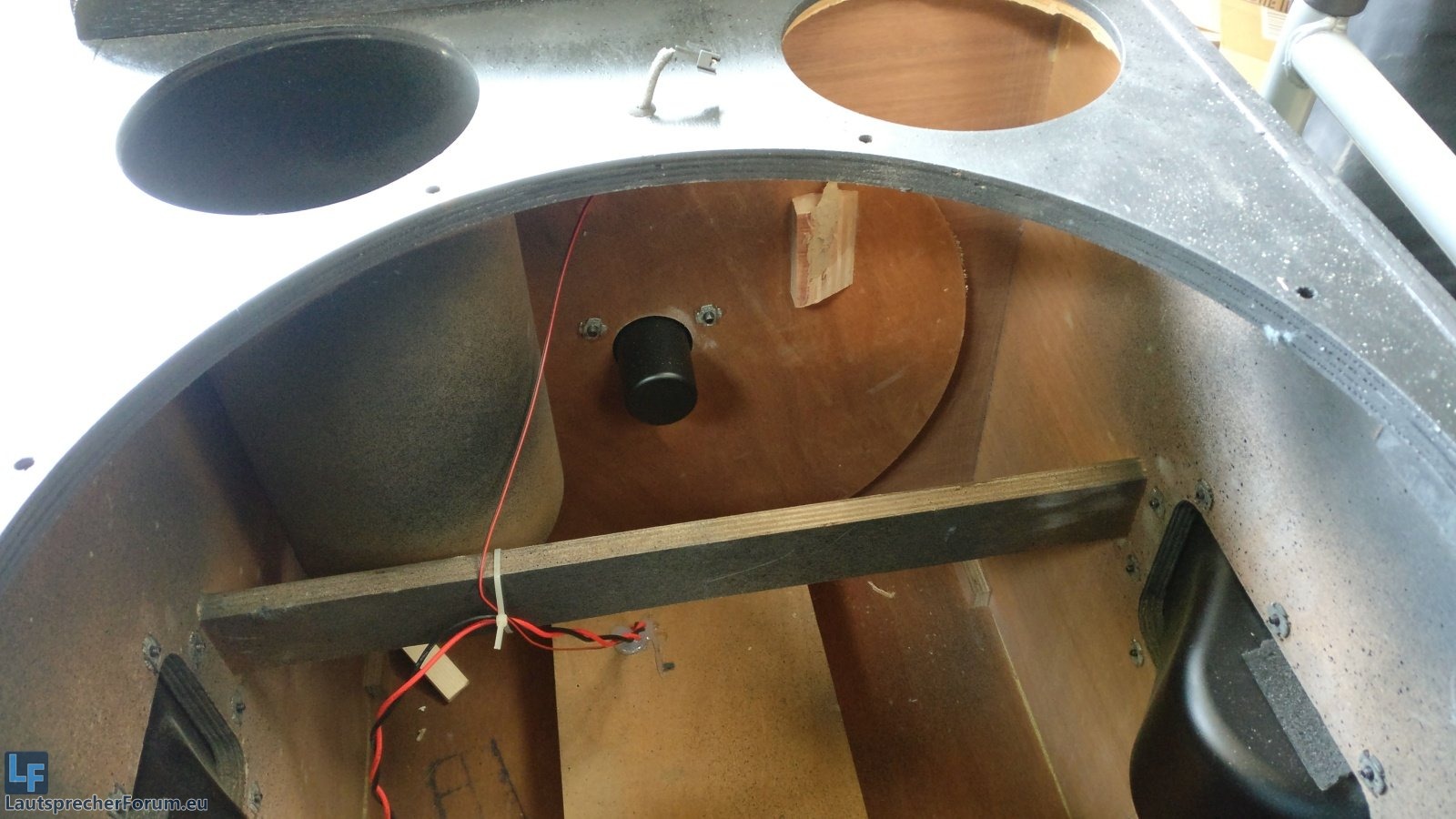 Die akustische XO liegt bei 1,5 kHz, eigentlich etwas gering für den DH1, geht mit dem großen Horn aber gerade so klar.