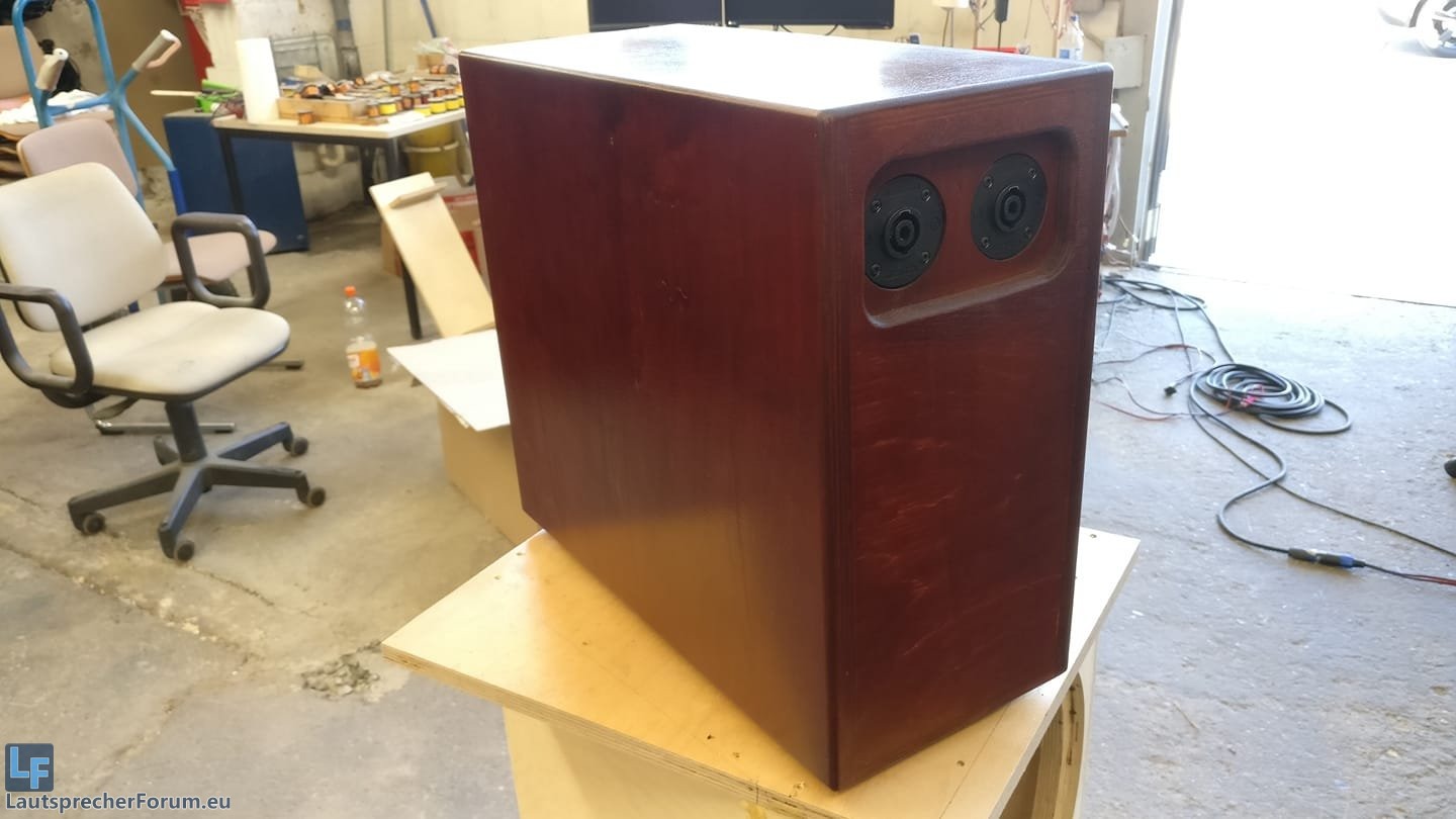 Bestückt mit Visaton W130X, nem kleinen 5"er (Außenmaß eher 6") mit Doppelschwingspule, 2x4 Ohm.