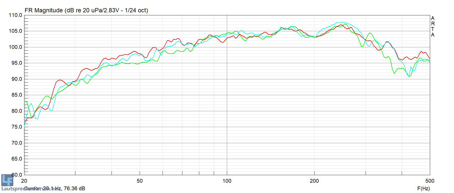 Naja ich finde das sieht eigentlich nach recht viel aus! Schon allein von Stehend auf liegend tun sich da ja 2-3dB im Bereich bis 45 Hz und auch darüber. Und im Vergleich zu einem sind das ja konstant 3 db mehr (ich nehme an die zusätzliche Sens durch die Pappen wurde skaliert?) und grade bei Outdoor mit Generator macht das doppelte an Verstärkerleistung schon richtig was aus.