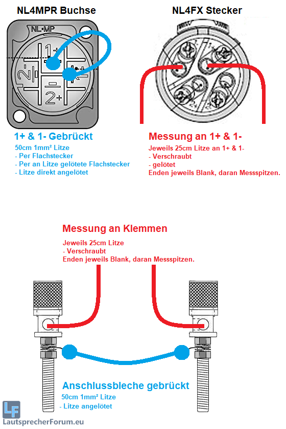 Messung von Polklemmen und Neutrik Speakon Anschlüsse