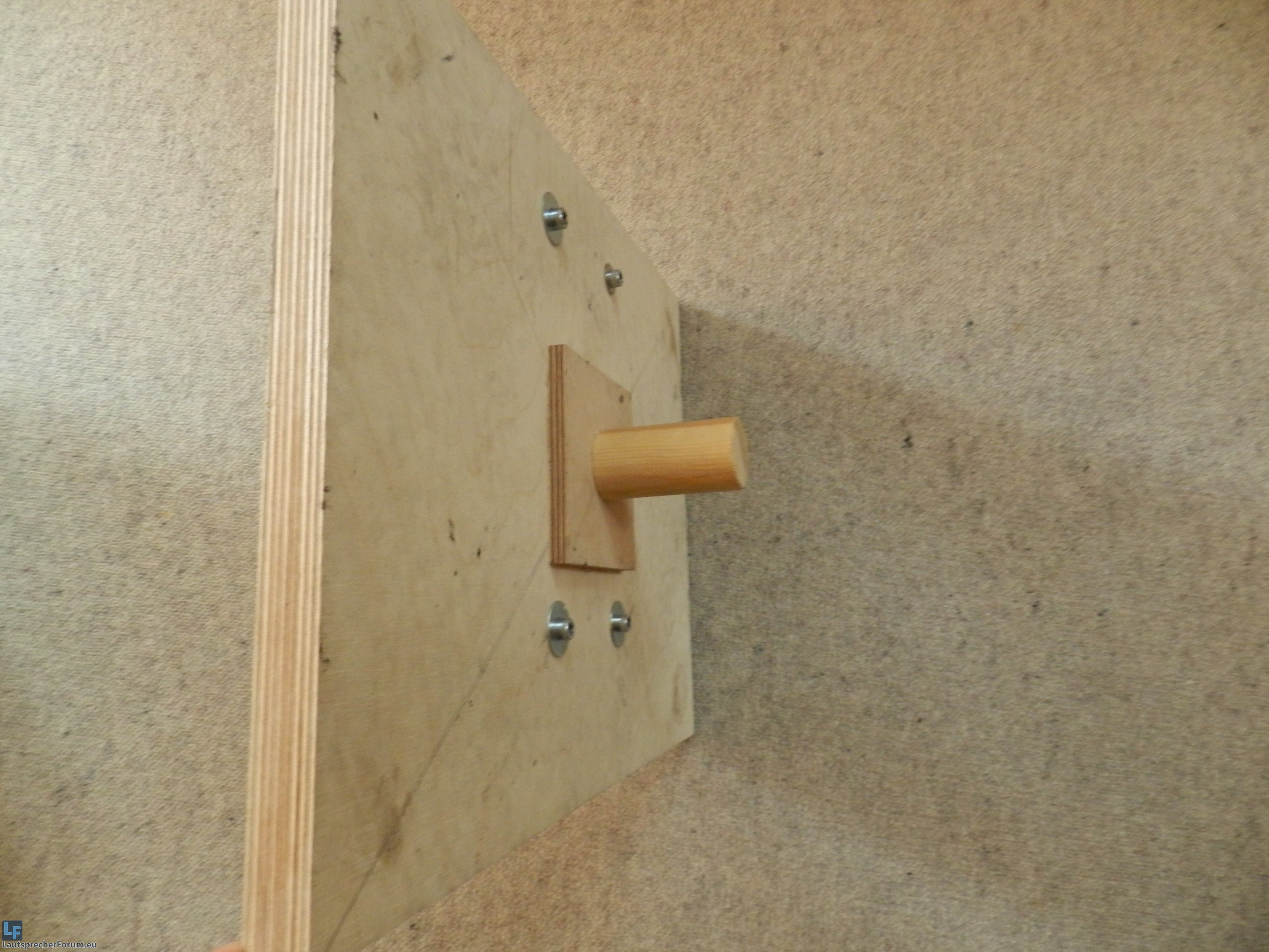 Ich war auch zu faul die Kanten abzurunden oder es in der Farbe der Box zu lasieren. Ansonsten gibts nicht viel zu sagen, habe oben ja ausführlich beschrieben wie es gebaut ist. Denk nur daran, dass du Sorge tragen musst, dass nicht allein der Flansch sondern zumindest auch die Füße das Gewicht halten. So ein Plastikflansch könnte sonst bei einer Bodenwelle gut brechen...