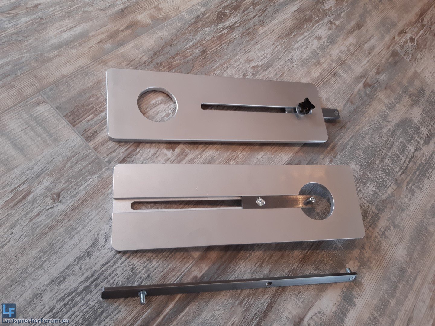 Die Zirkel sind genau so, wie auf den Bildern zu sehen - die Befestigungslöcher sind für jede Fräse unterschiedlich und müssen daher selbst eingebracht werden.