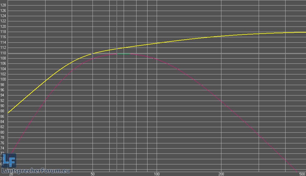 fs = 44 Hz (es gibt auch die Angabe "free air resonance" bei 36 Hz??)