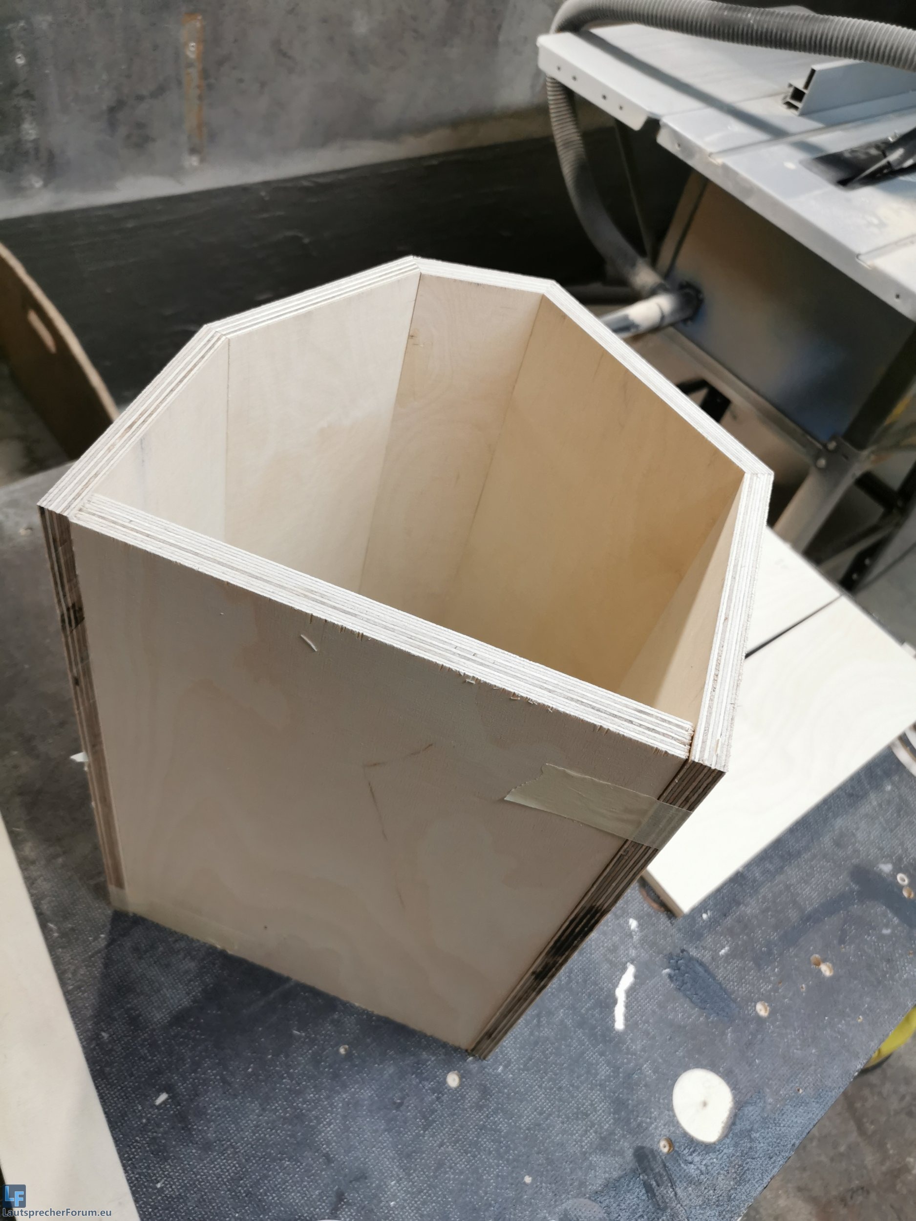 Nach dem trocknen fix Schallwand, deckel und Boden angebracht und verschraubt (Schrauben werden nachher mit Dübel ersetzt)