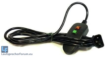 Gesteuert wird die über eine Fernbedienung, welche man mit einem 3 pol. Kaltgerätestecker anschließt. Scheinbar schaltet die Fernbedienung also 230v.