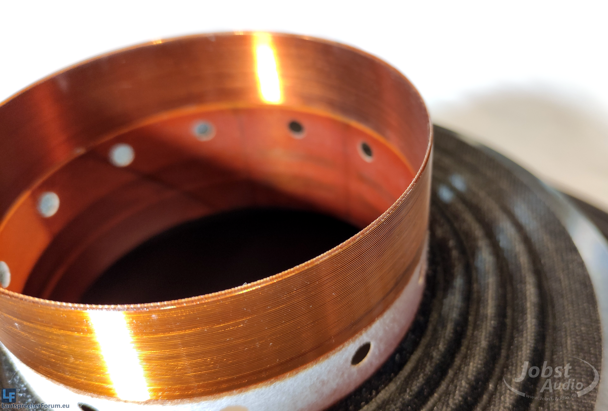 Auf diesem Träger wird der Draht aufgewickelt, als auch verklebt. Die Wicklung und der Träger bilden zusammen die sogenannten Schwingspule,