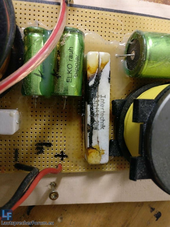 Trotzdem hätten die Widerstände eine bessere Wärmeableitung wenn sie mit Wärmeleitpaste auf eine Platine mit viel Kupfer geklebt worden wären. Bei LED Platinen und Spannungswandlern ist das schon Standard. Beim Lautsprecherbau wird das wohl deshalb nicht gemacht, weil nen zweiter Widerstand und ein kleiner Abstandshalter günstiger sind als ne ordentliche Platine mit viel Kupfer oder Alu drin.