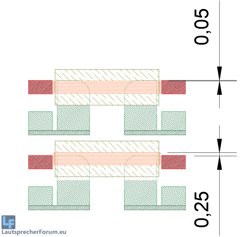 Dennoch, bei 2,5mm sind schon 2mm (also 22%) der Spule nicht mehr im vollen Magnetfeld.