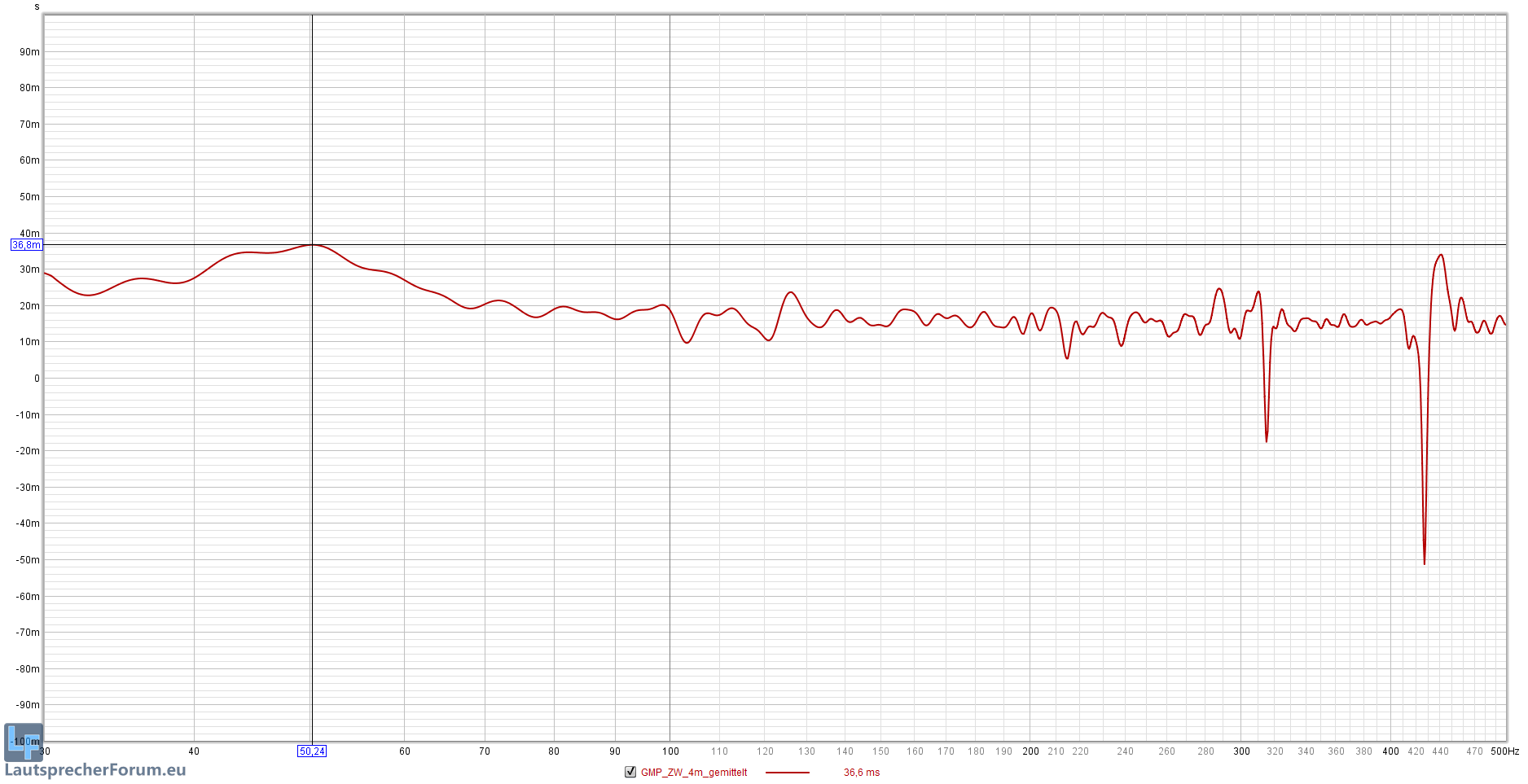 Nimmt man so grob den Mittelwert bei dir, kann man sagen, dass die GD erst oberhalb 300Hz auf die Null kommt, also so der Bereich 150-300Hz.