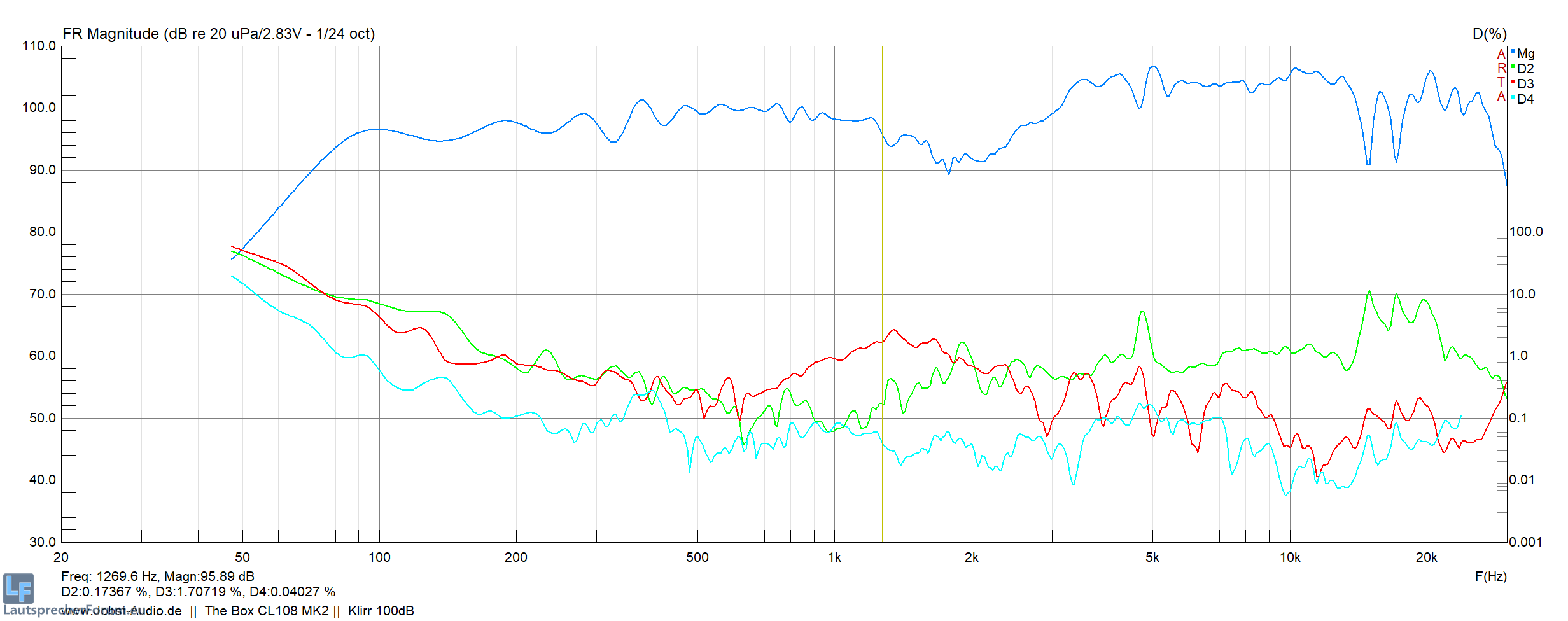 Das CL108 MK1 habe ich bei 107dB gemessen, hier sind wir im Schnitt bei 6% K3 (Hochton eher 1,1%) mit Peaks auf ganzen 16%!