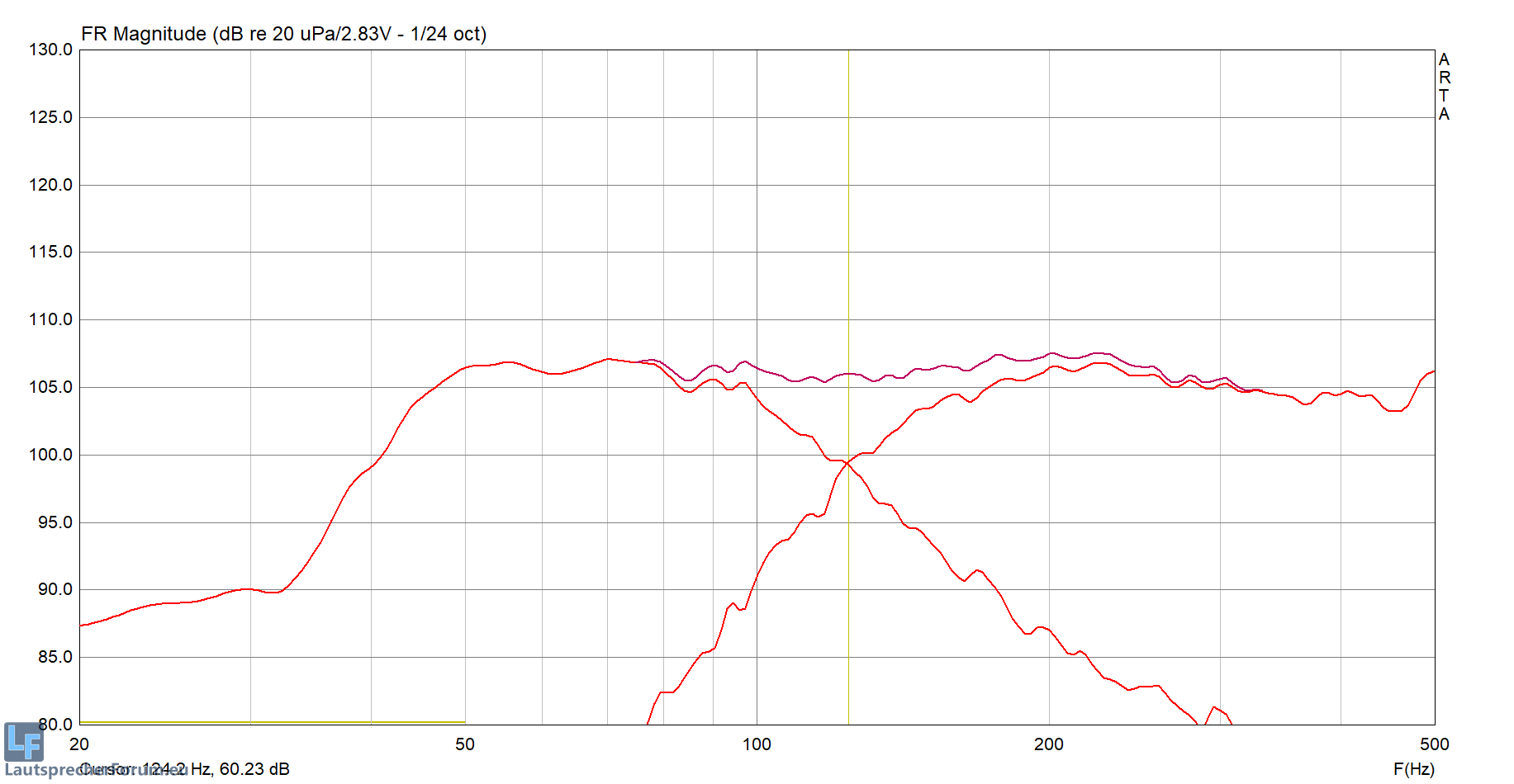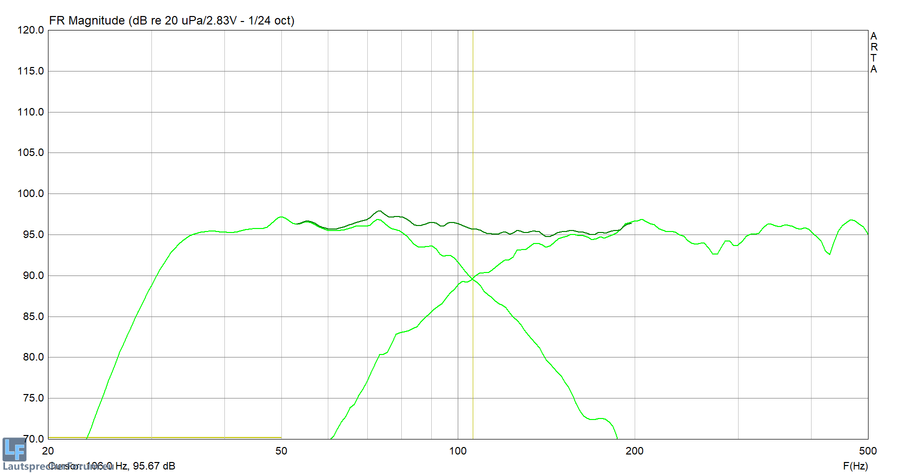 Man beachte ab wann der Bass circa -3dB spielt und wo er im Bereich 200Hz liegt, bzw. er sich allgemein im Bereich 100-200Hz verhält.